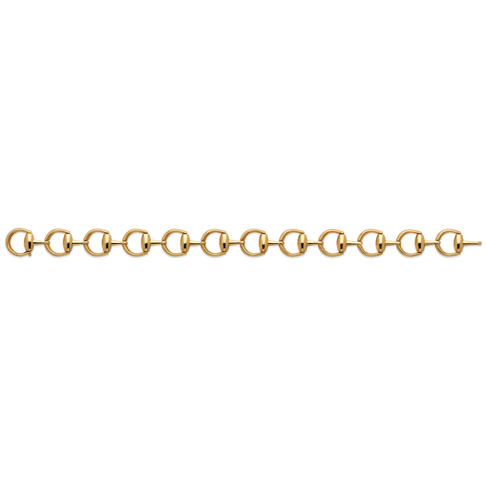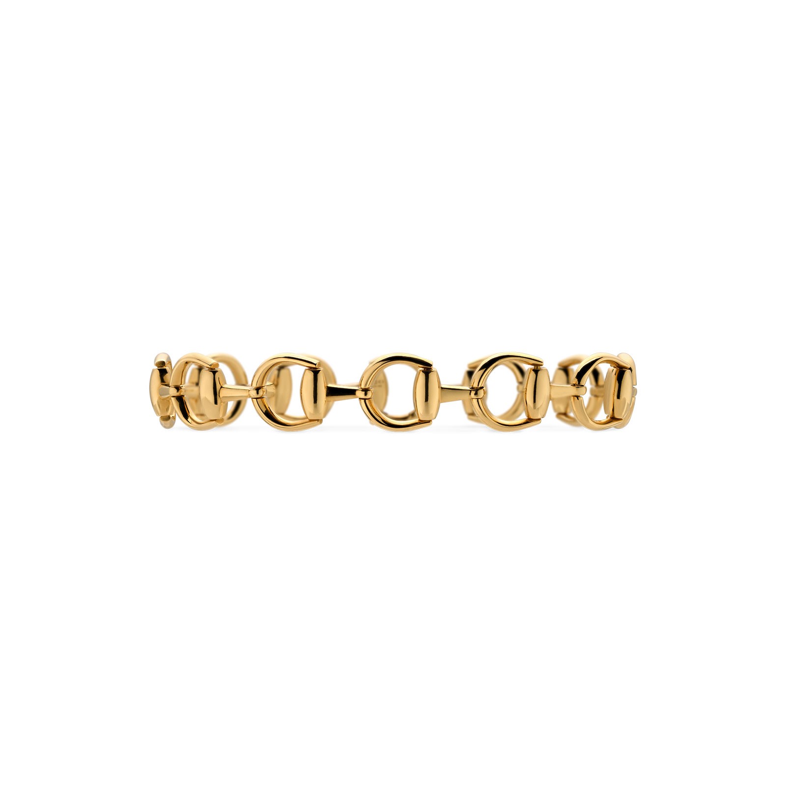The bracelet features Gucci's iconic horsebit motif, a design deeply rooted in the brand's rich equestrian heritage, symbolising strength and grace. The gleaming yellow gold adds a touch of opulence, ensuring that this piece stands out whether worn alone or paired with other jewellery. Its intricate craftsmanship and luxurious finish make it a true testament to Gucci's unparalleled commitment to quality and design.