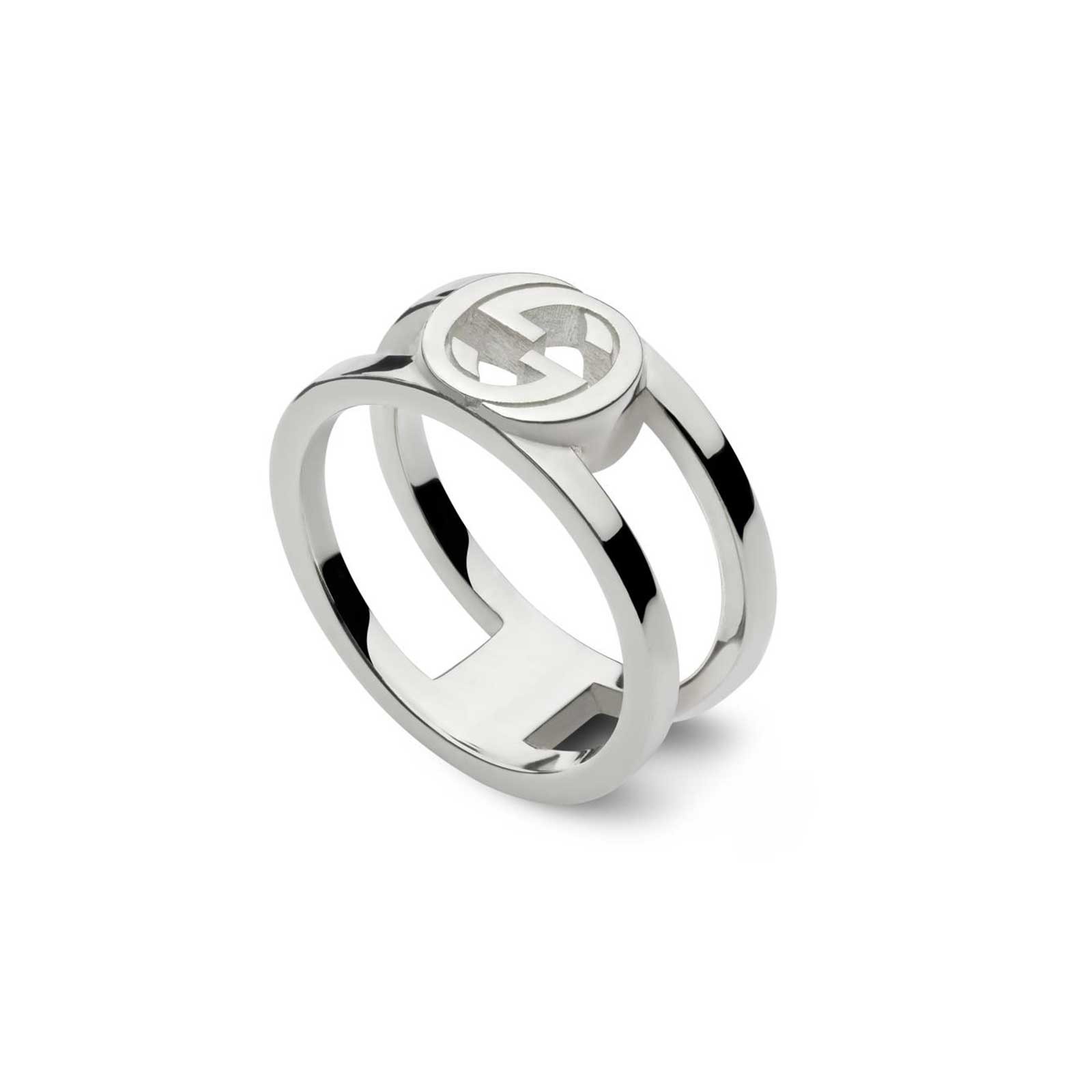 Perfected with meticulous detail, this sensational piece boasts the iconic Gucci interlocking G motif, a symbol that speaks volumes of style and class. Made from premium silver, its lustrous appeal adds a touch of glamour to any outfit, ensuring you stand out in the most refined manner. The ring’s 9mm band exudes a bold presence on the hand, making it not just a piece of jewelry, but a statement of unmatched fashion sensibility.