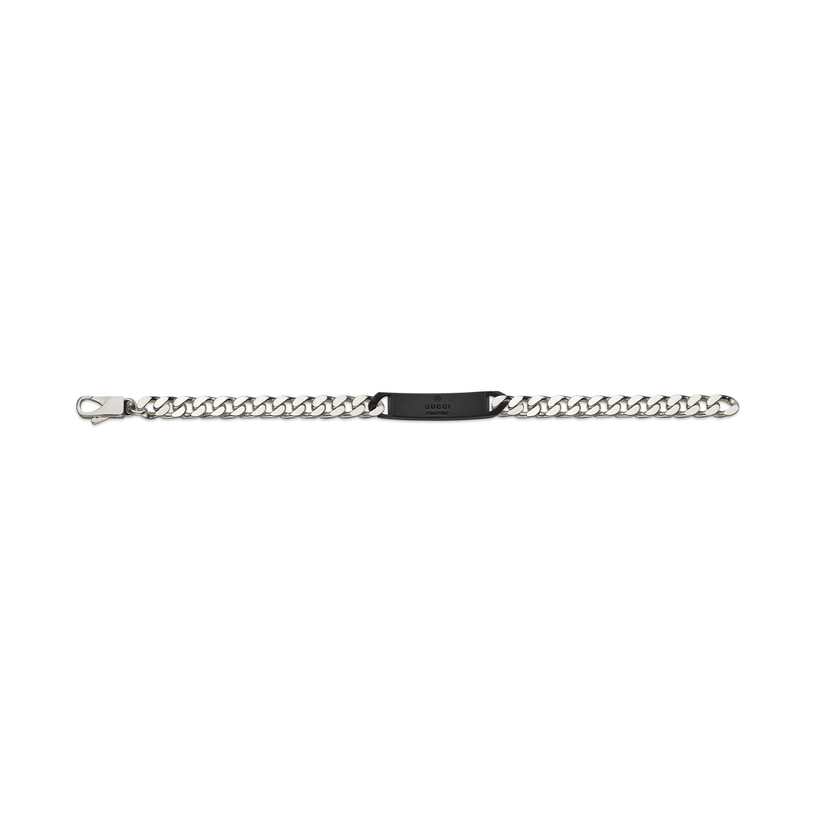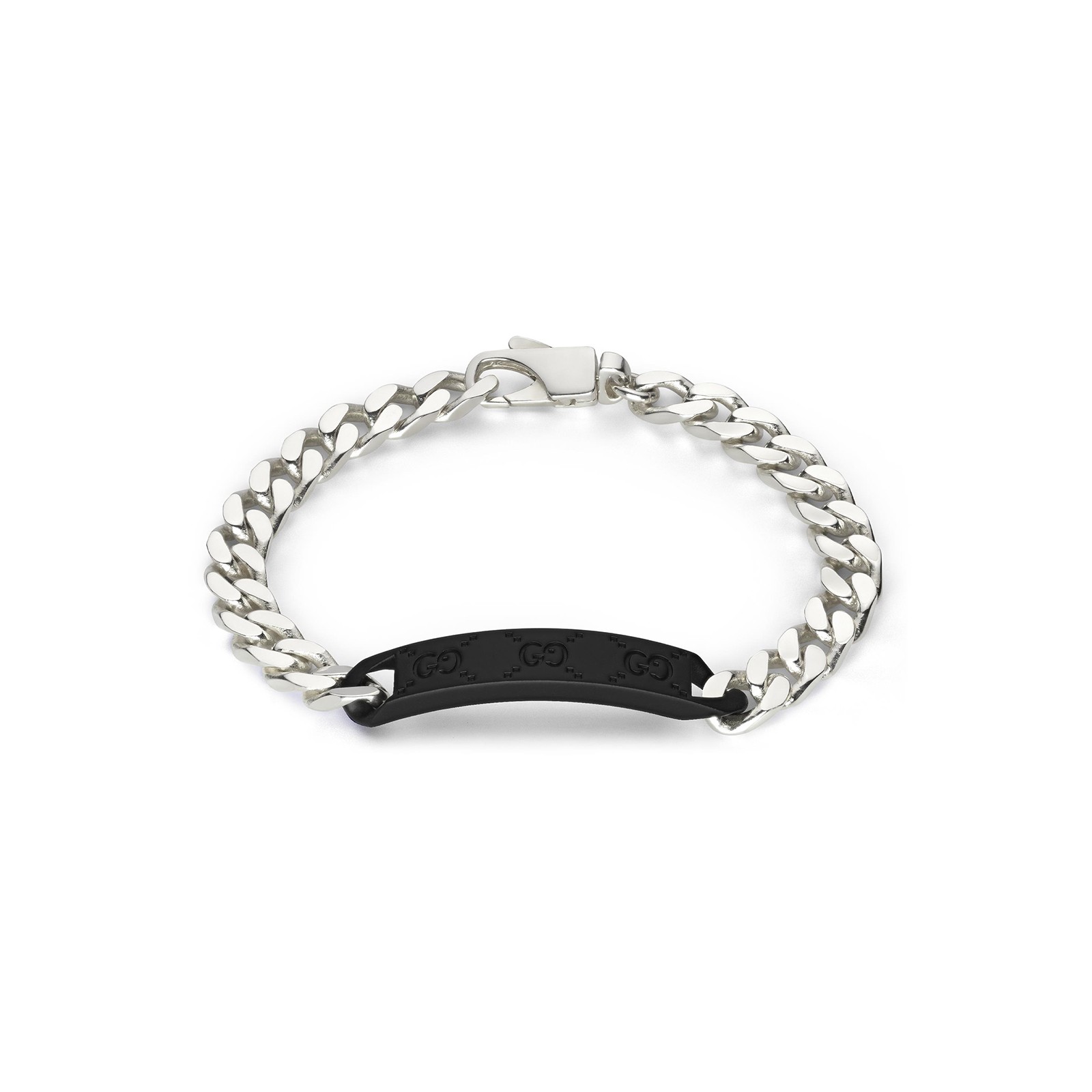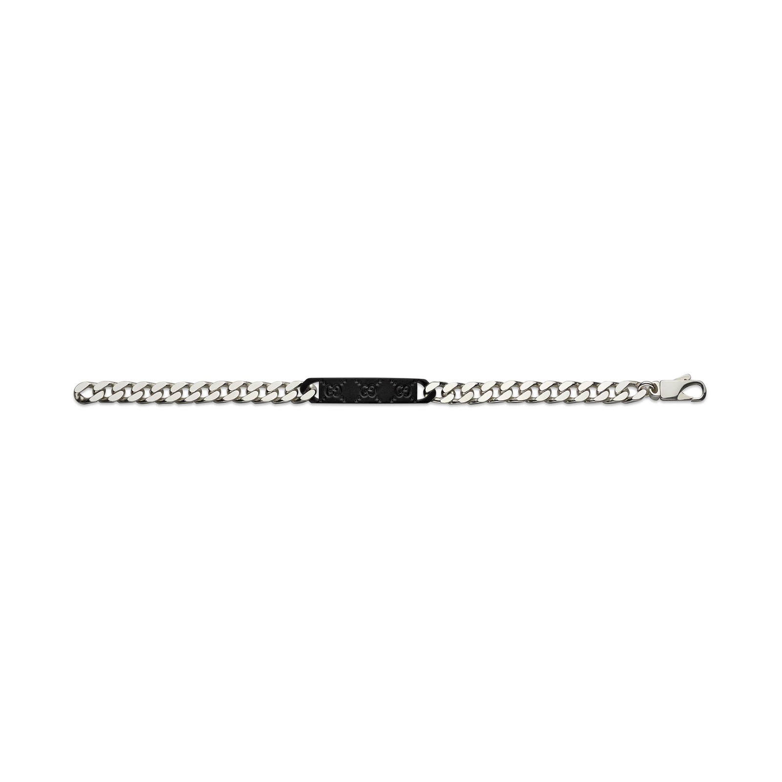 Introducing an exceptional emblem of craftsmanship and elegance: the Gucci Tag Sterling Silver Chain Bracelet, model number YBA797167001, specifically tailored for the discerning man in size XL. This unparalleled accessory marries the legendary Italian design ethos with the unrivalled quality of sterling silver, creating a stunning piece that stands as a testament to Gucci's iconic legacy.