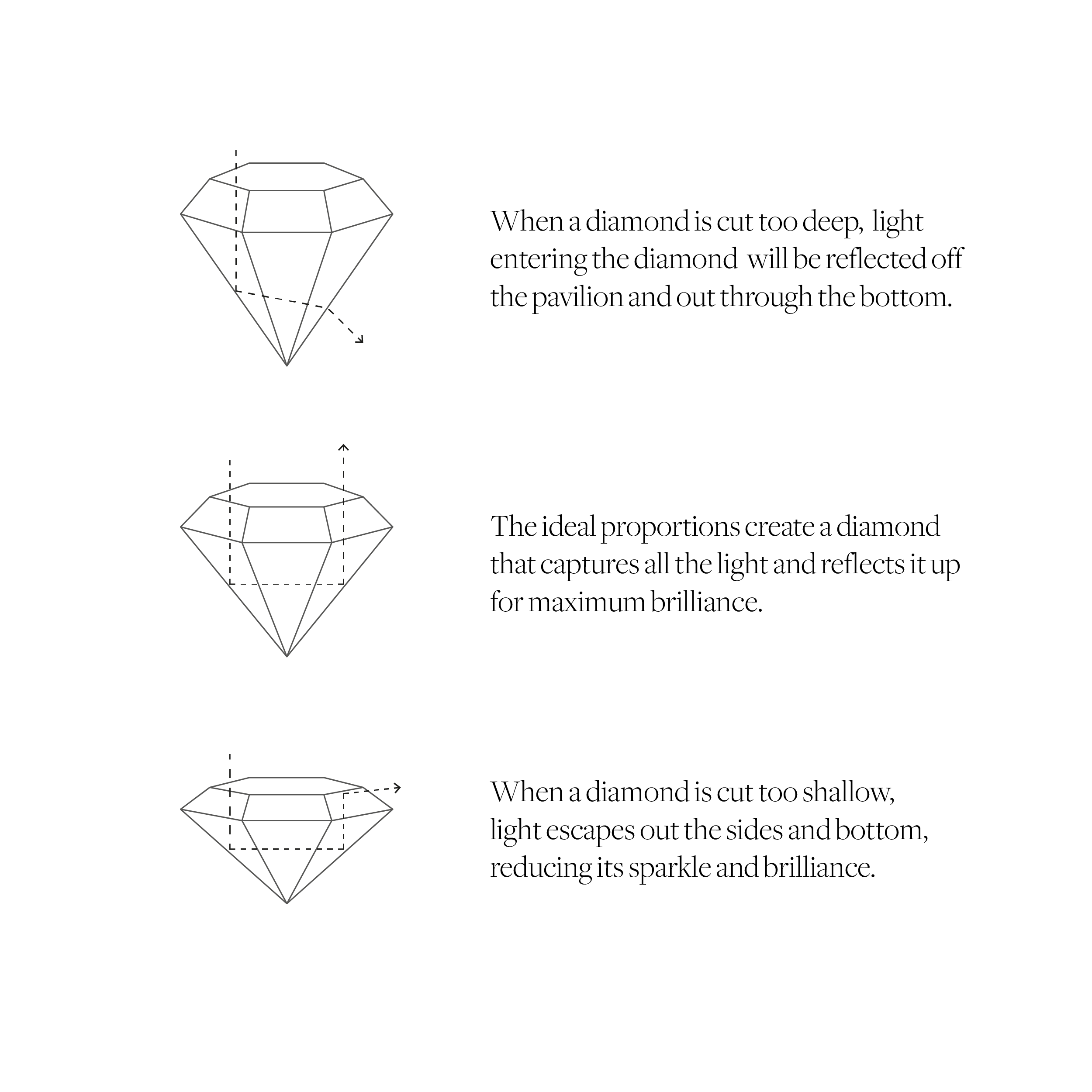 The diamond cut determines how well a diamond reflects light, enhancing its sparkle and brilliance.