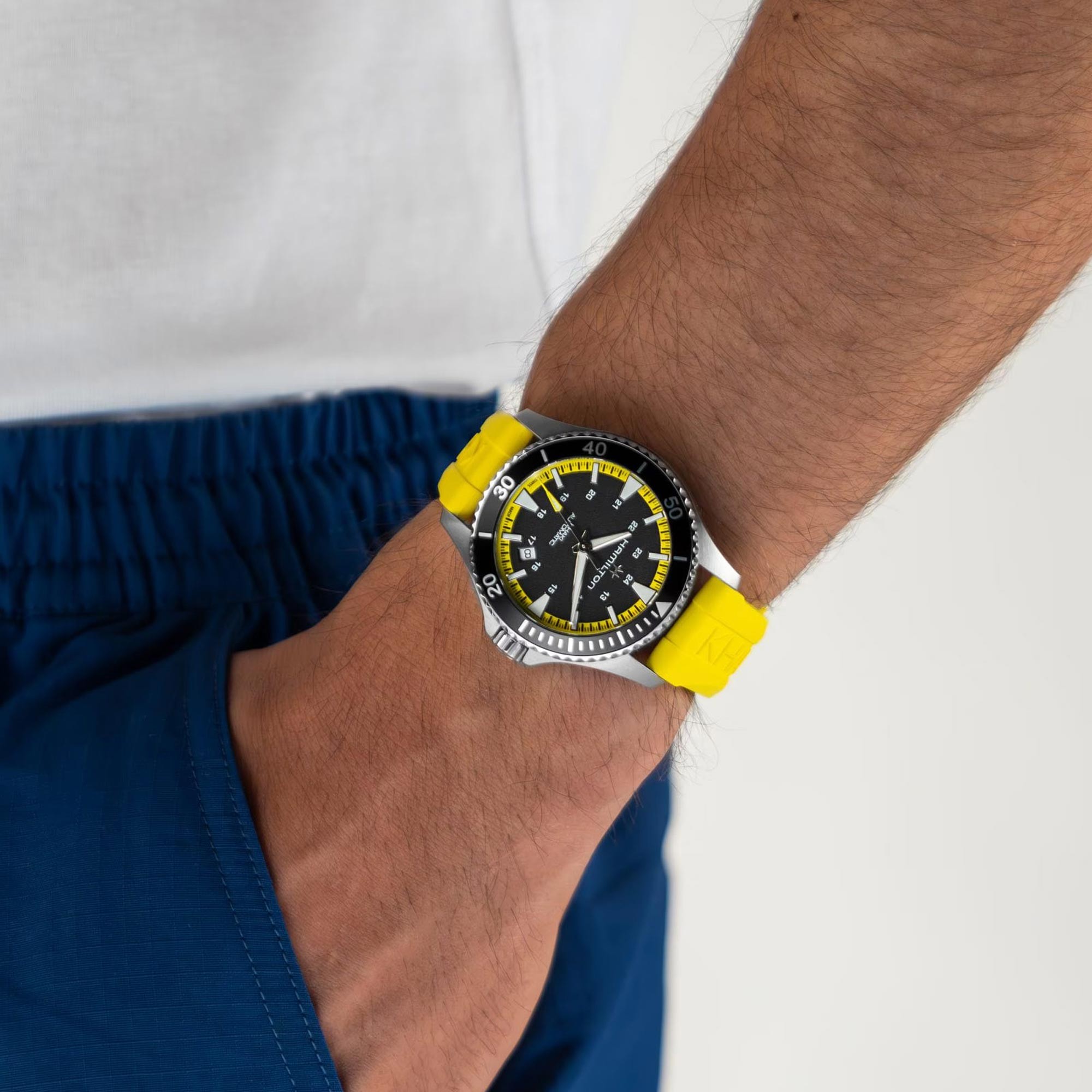 Beachside, poolside or swimming in the deep ocean, the new Khaki Navy Scuba is guaranteed to make a splash in the style stakes. For modern mariners, snorkelers, surfers and beach lovers, it’s eye-catching as well as functional, thanks to its acid yellow rubber strap and contrasting black dial. Whether you’re timing your swim, your run or your time in the sun, it will make sure you keep your cool, even in soaring temperatures.