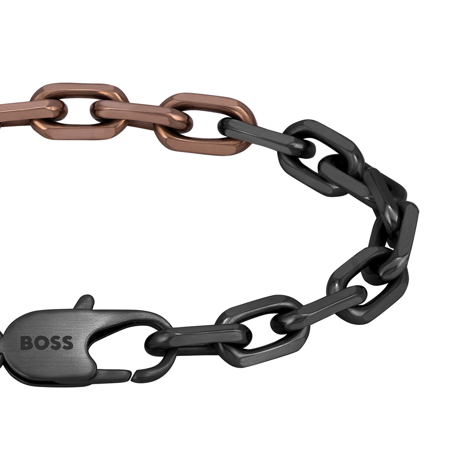 Elevate your jewellery collection with this Hugo Boss Bracelet 1580503M, showcasing a distinctive aesthetic that will elevate any outfit. Crafted from ion plated stainless steel, this 19.5cm contemporary chain design will enhance any daytime or evening look and showcase your designer aesthetic. Securely fastened with a BOSS branded lobster clasp. Whether worn individually or stacked, this bracelet adds a touch of sophistication. Shop now at Chisholm Hunter and discover the collection.