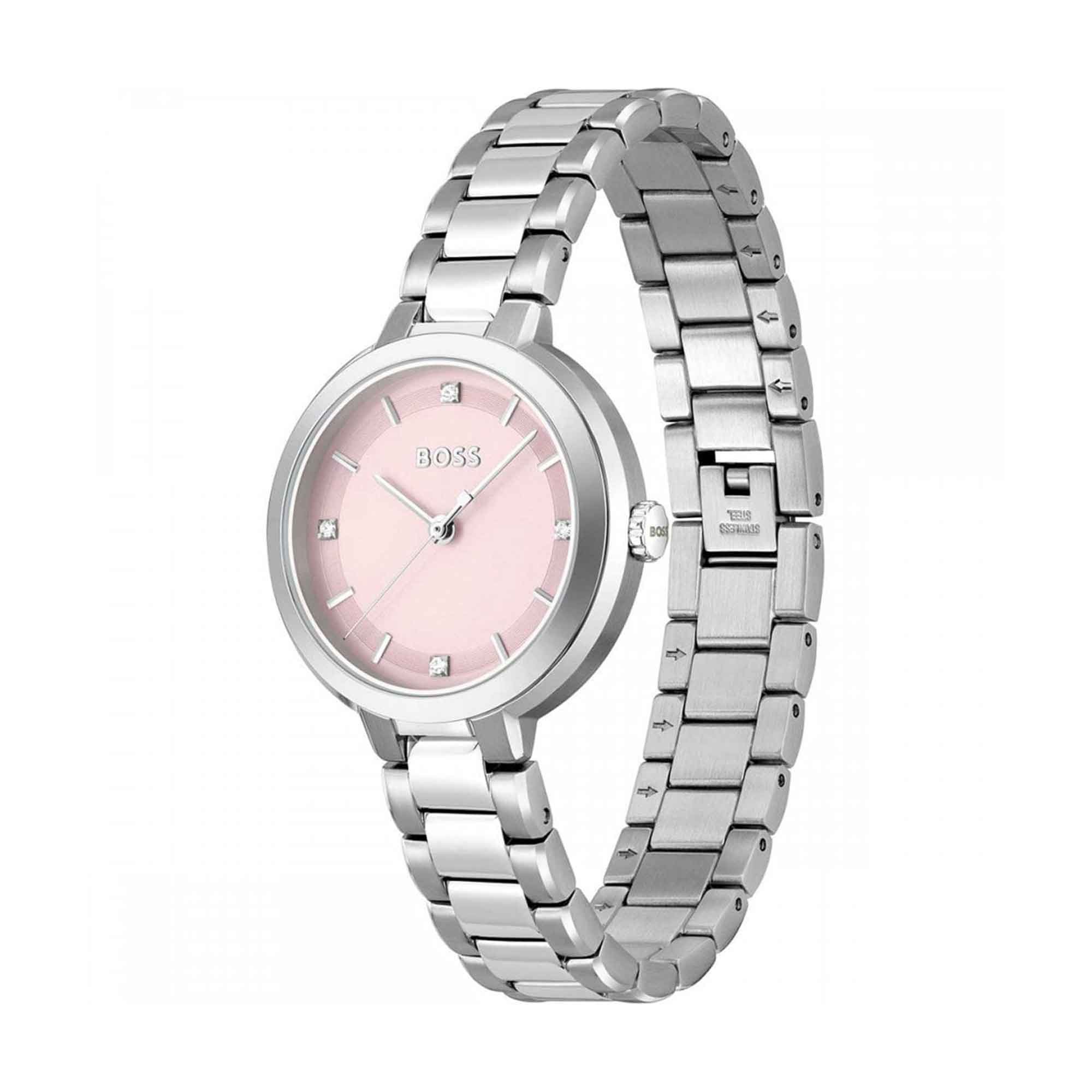 The sophistication and elegance of the Hugo Boss Sena 34mm Ladies Watch 1502757 cannot be overstated. From the renowned BOSS collection, this exquisite timepiece exudes a subtle glam which is judiciously designed to complement every modish woman's style. Boasting a quartz movement - one of the most reliable and accurate watch movements available - it ensures you are not only in style but also consistently punctual. The watch is an extension of your poise and confidence, with a sleek 34mm case width, making a strong yet understated statement of class and status on your wrist.