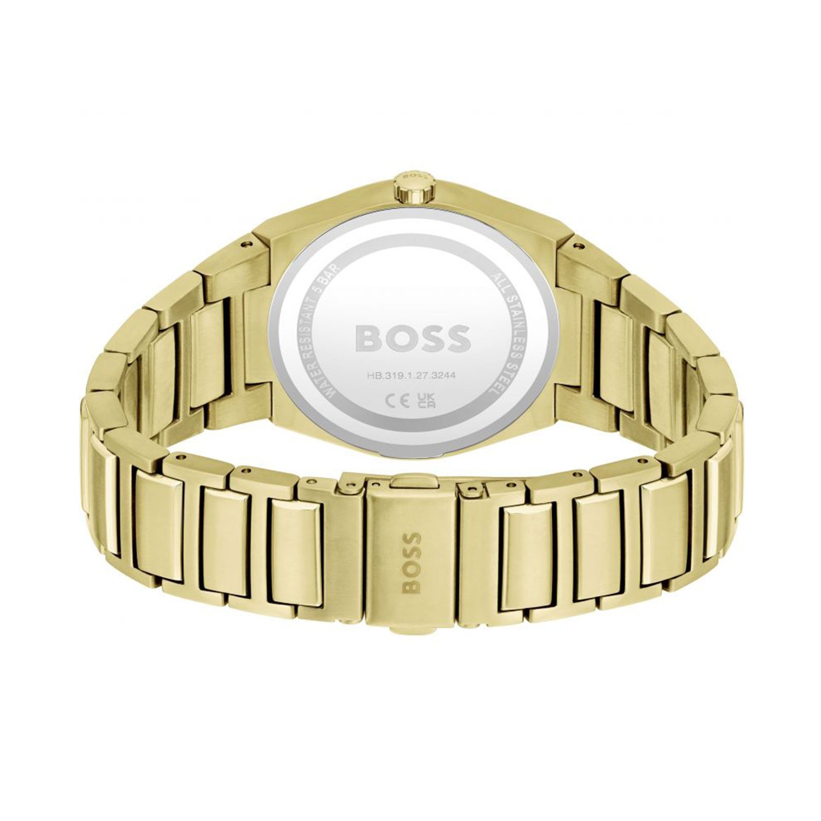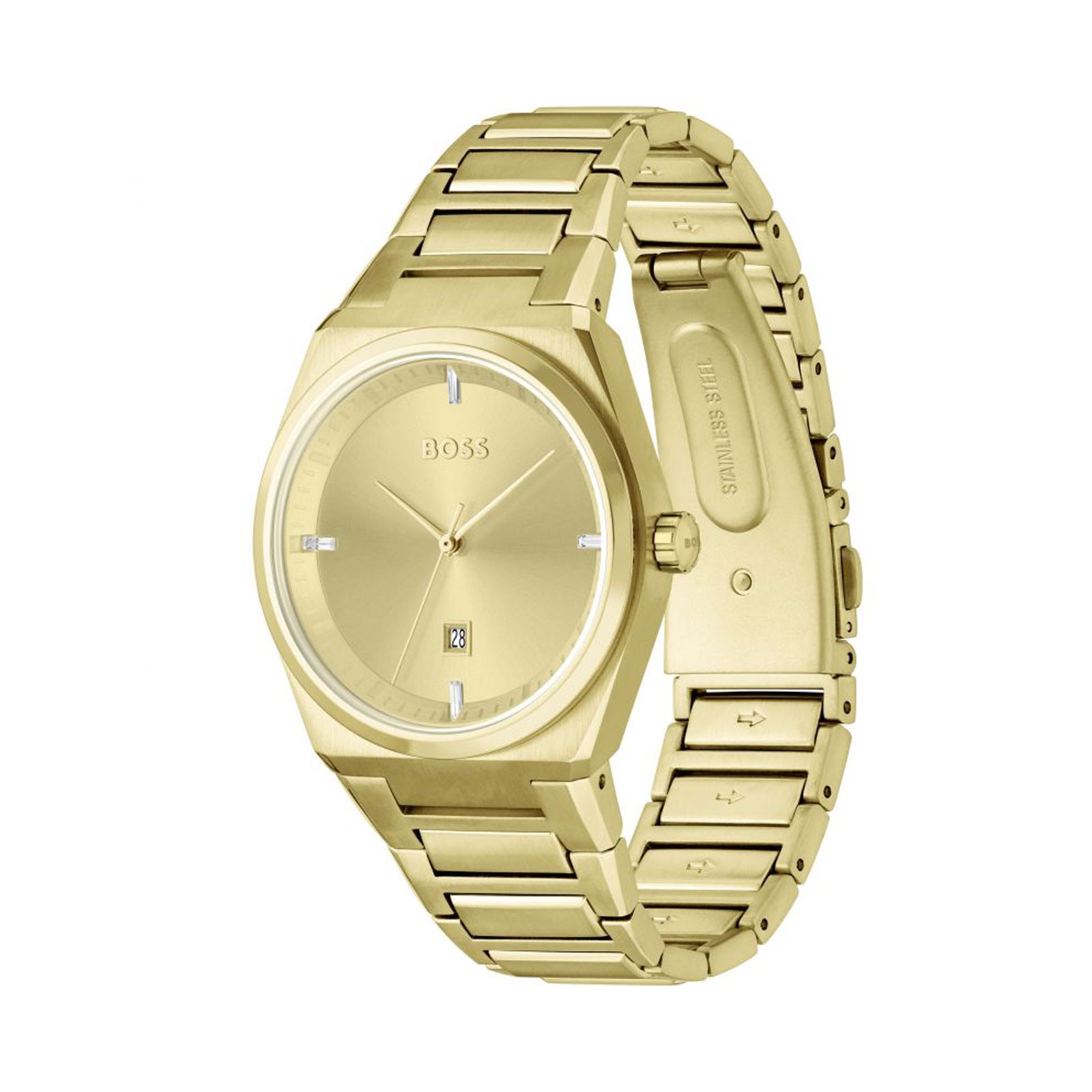 Combining a clean, minimal look with sparkling design details, the BOSS Steer's elegant simplicity echoes the BOSS woman's innate confidence. The shaped case and fully integrated bracelet feature chamfered lugs and links for a Bauhaus-inspired silhouette, while a stamped-down minute track enhances the sunray dial with crystal markers. The ultimate in understated chic, this three-hand timepiece with date function is offered in feminine colour combinations.