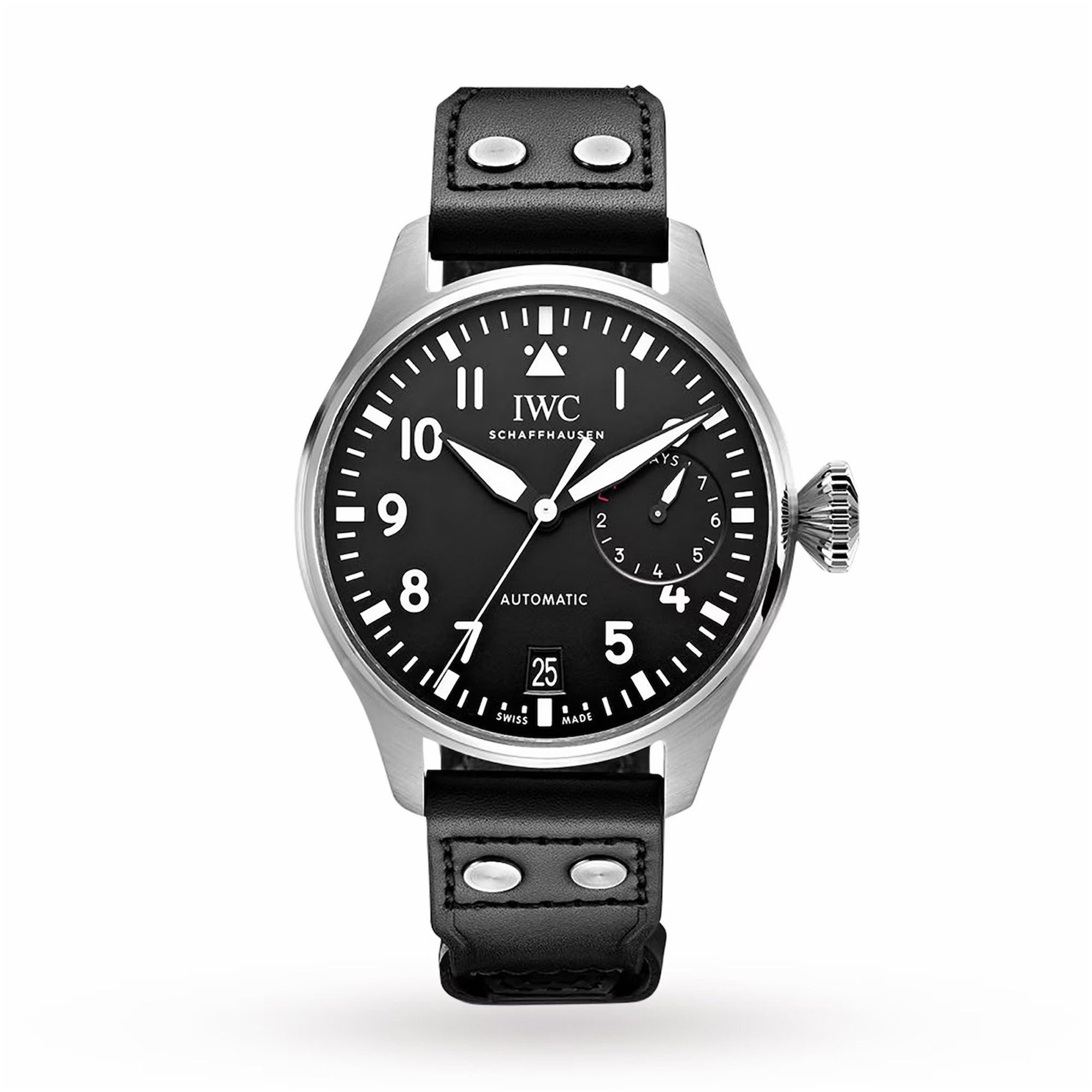 A legend pays tribute to its past: the Big Pilot's Watch from IWC is the uncompromising embodiment of the historic navigational instrument for pilots. In 2016, IWC took a step back towards the roots of the Big Pilot’s Watch and gave it a gentle facelift. The IWC-manufactured 52110-calibre movement unites some of watchmaking’s greatest achievements. It features an efficient Pellaton automatic winding system with parts made from black or white ceramic. With the help of two barrels, it builds up a reserve of 7 days. The display at “3 o’clock” indicates the time remaining until the movement comes to a stop. The Big Pilot’s Watch has a date display at “6 o’clock” and the central seconds essential in any watch used for flying. The 46-millimetre case, which is water-resistant to 6 bar, encloses a soft-iron inner case that protects the movement against magnetic fields. The watch also features a striking conical crown. The legendary Junkers JU-52 plane is engraved on the case back of the Big Pilot’s Watch. This model comes with a black calfskin strap, which perfectly complements the watch.