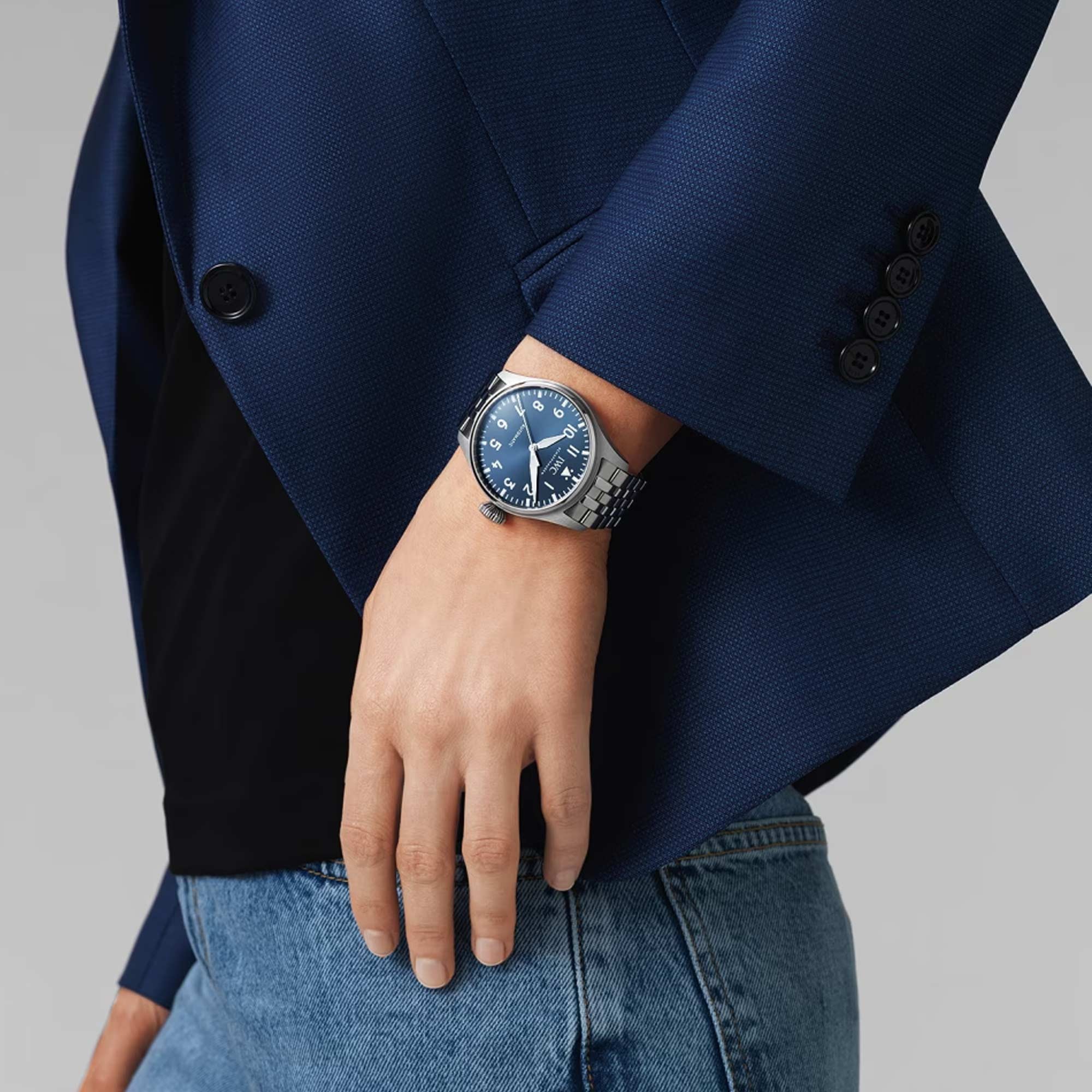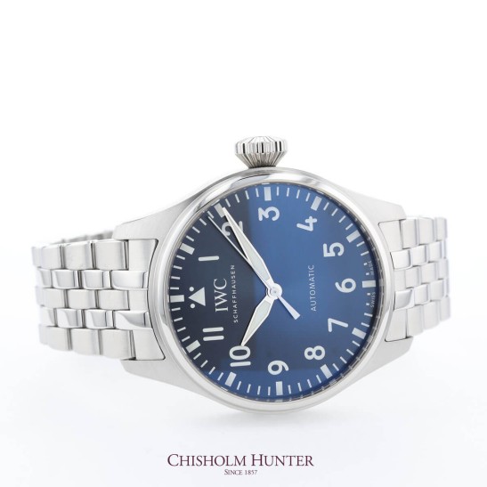 Shop the latest addition to IWC Schaffhausen’s impressive Big Pilot's collection with the stunning IWC Big Pilot's 43 Mens Watch IW329304. This impressive 43mm mens watch features a stainless-steel case with a deep navy blue dial. Powered by an automatic movement, this watch guarantees precision and style. The Pellaton winding system has been reinforced with ceramic components and builds up a power reserve of 60 hours. Presented on a stainless steel strap with folding safety clasp. Water resistant up to 100 metres.