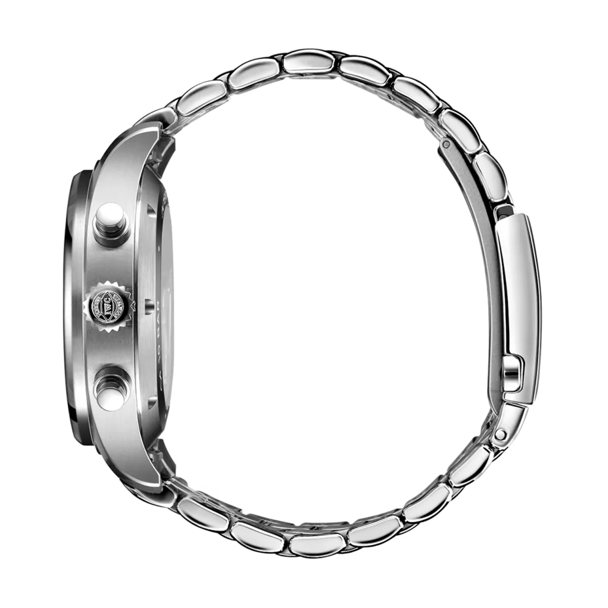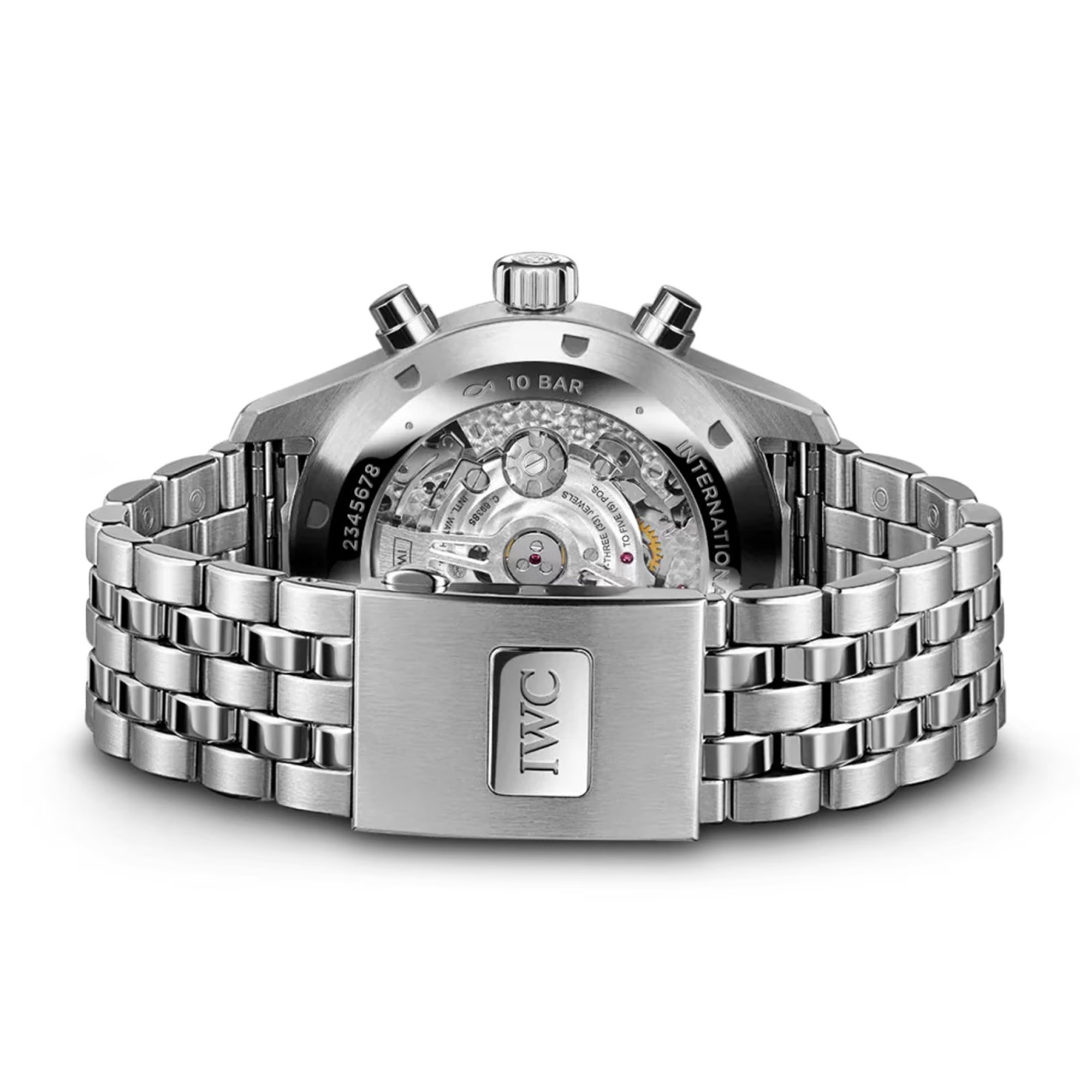 Key features of the IWC Pilot's watch chronograph are a clearly organised dial and excellent legibility even under the most demanding conditions. Thanks to a robust 79320-calibre chronograph movement, it is possible to record both single and aggregate times of up to 12 hours. Subdials features at 12 and 6 o'clock are used for aggregate timing while a red seconds hand at 9 o'clock indiates that the watch is running as normal. This particular timepiece is water resistant up to 60 metres and presented on a stainless steel bracelet. The back of the stainless steel case features an engraving of a Junkers JU-52, whose cockpit design was the inspiration for all Pilot’s Watches.