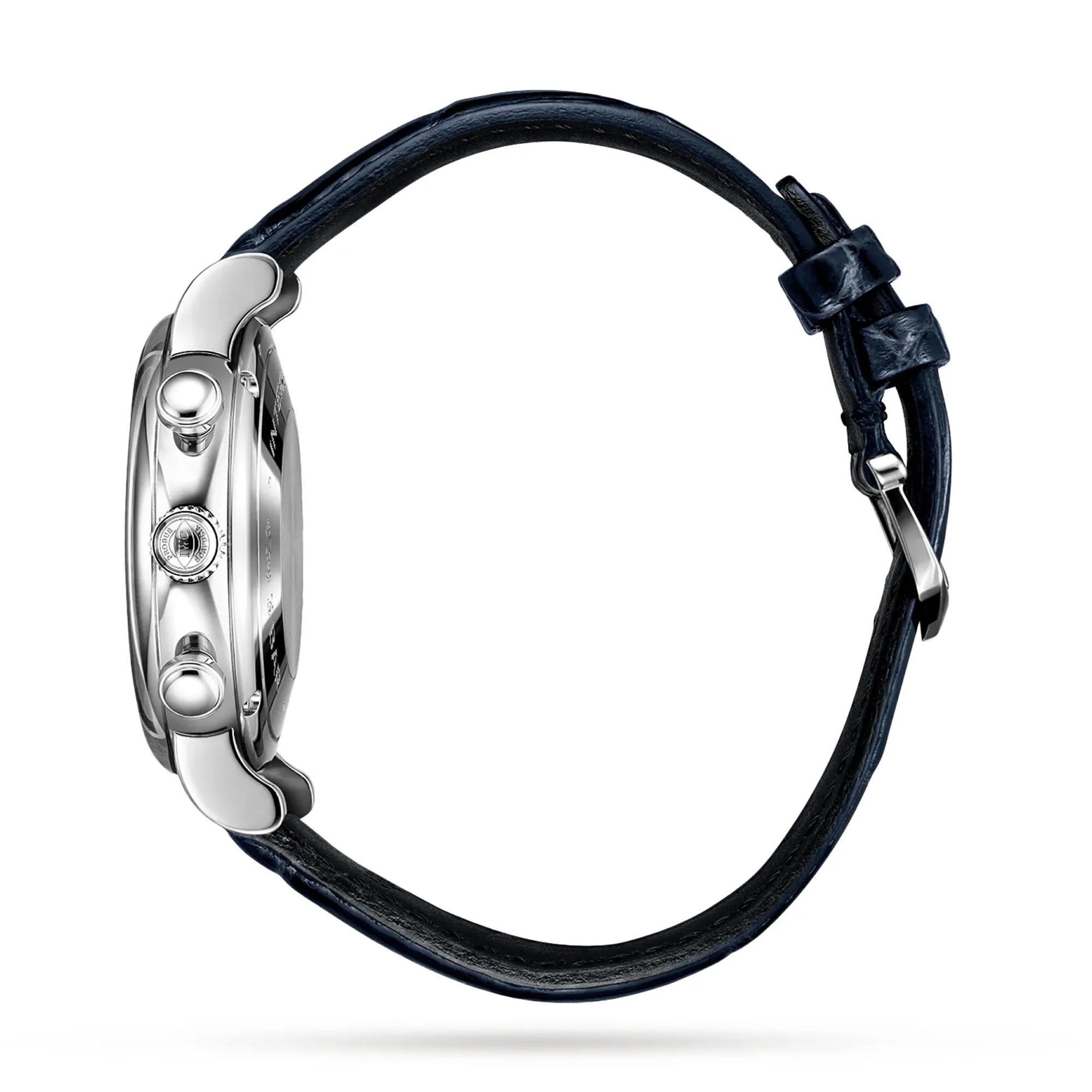 With a clean and classic design, the IWC Portofino Chronograph 39mm Mens Watch IW391407 is the perfect everyday wearer. Featuring a stainless steel case that’s water resistant up to 30 metres, this gents watch is complete with stainless steel case with anti-reflective convex sapphire crystal glass. With an easy-read dial containing a silver face, navy hands and indices, this stunning timepiece has a 30-minute function placed at 12 o’clock and a small seconds sub-dial at 6 o’clock. Presented on a navy blue alligator leather strap for a casual finish, the automatic self-winding Calibre 79350 delivers a 44-hour power reserve.