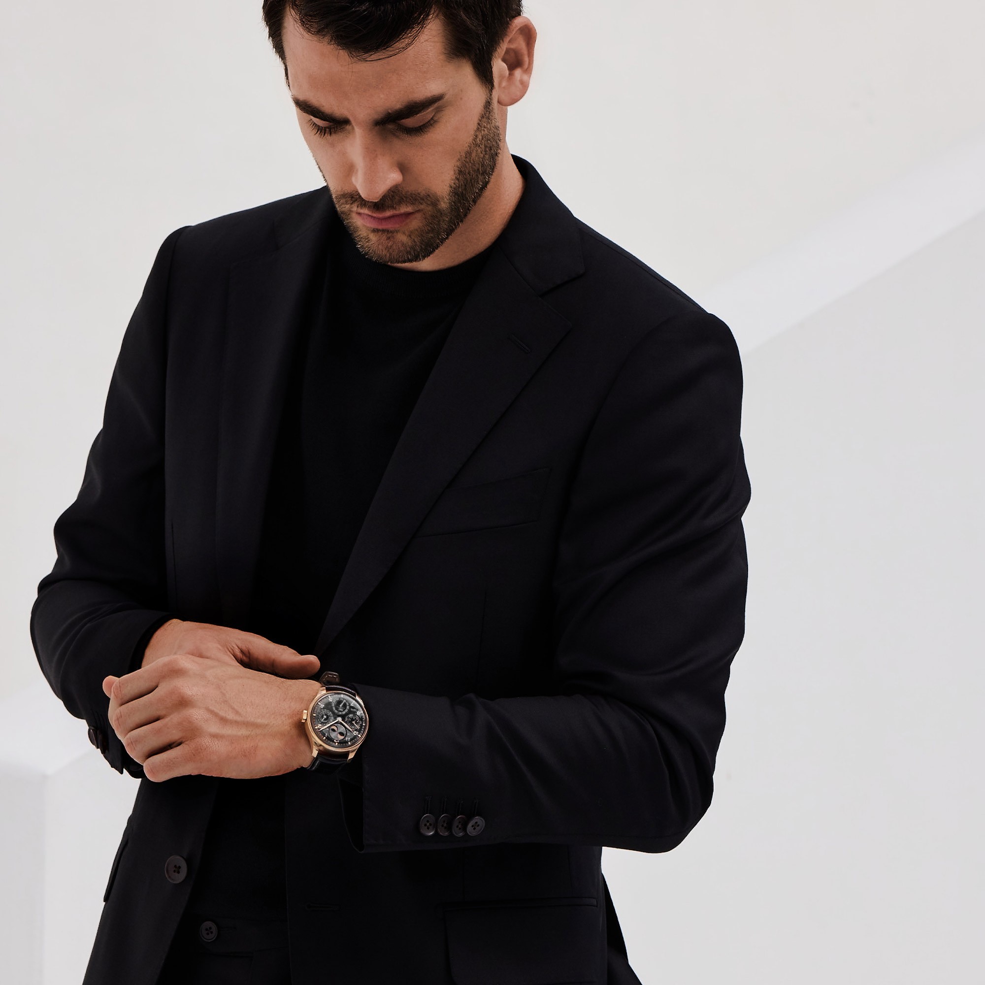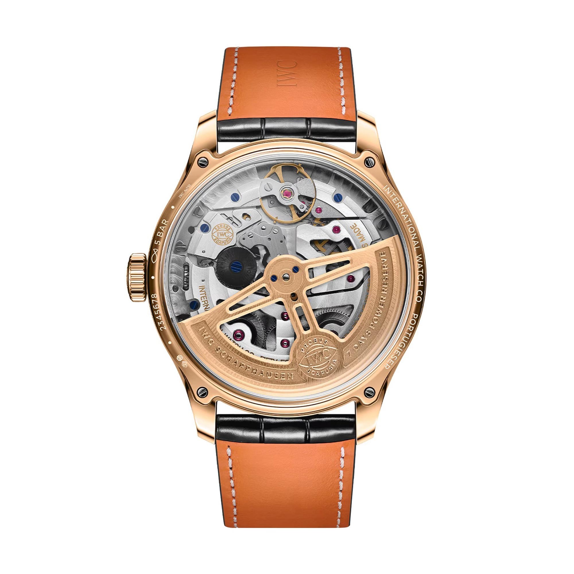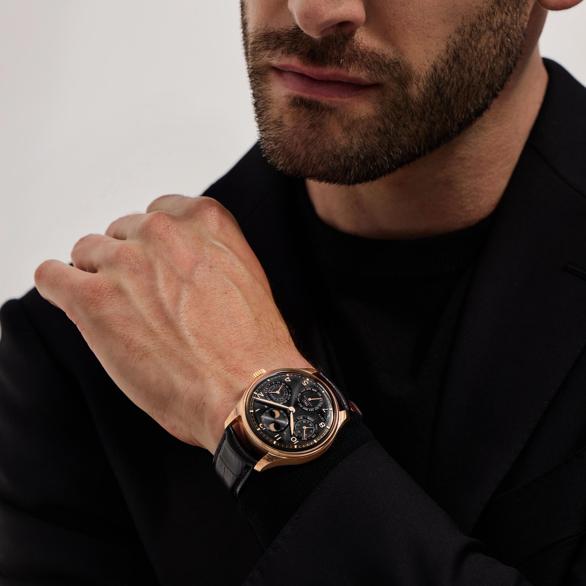 The special features of this watch truly set it apart. A perpetual calendar, meticulously engineered to require minimal adjustment, seamlessly integrates with the automatic movement, embodying the pinnacle of horological ingenuity. This function not only underscores the technical excellence of IWC Schaffhausen but also ensures that this timepiece remains a reliable companion through the years.