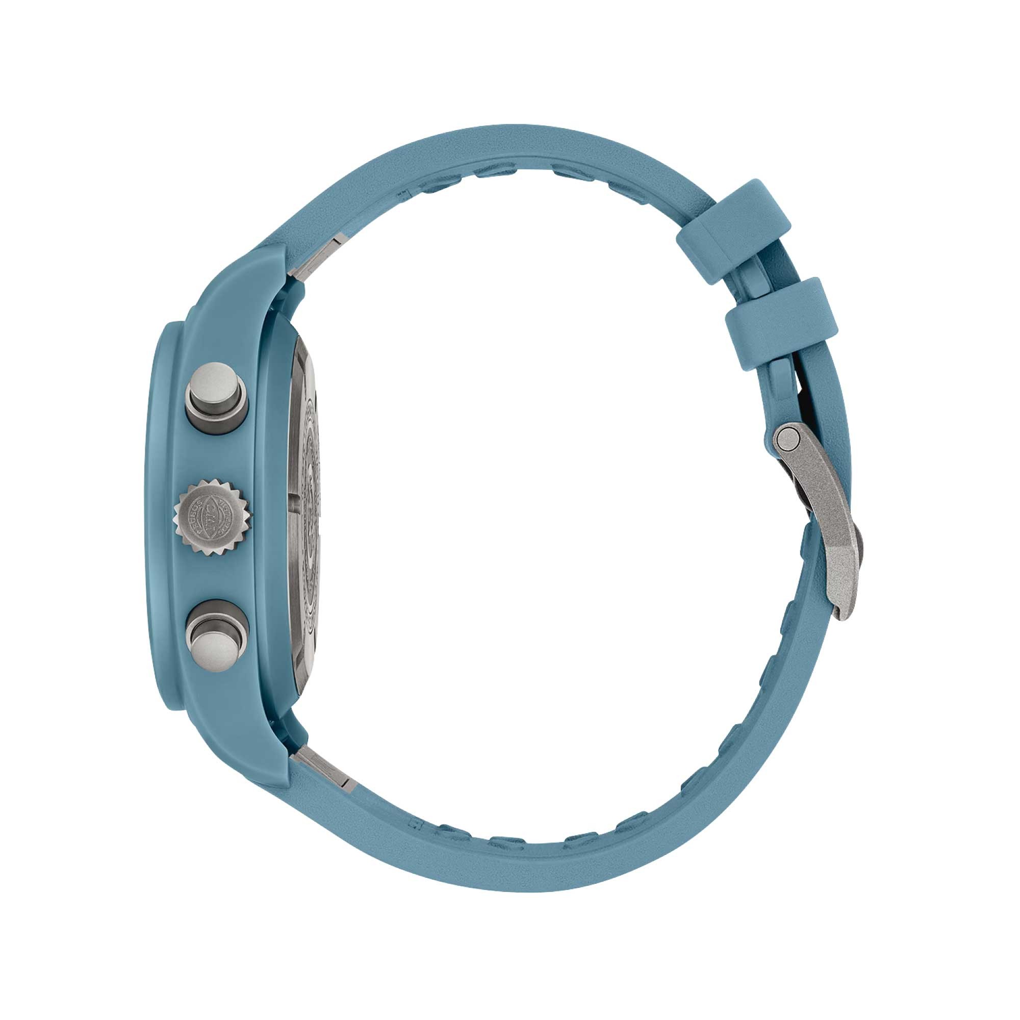 The blue hands are coated with Super-LumiNova® to enhance legibility in low-light conditions. The process of manufacturing colored ceramic represents a remarkable feat of material engineering. Zirconium oxide is mixed with different metallic oxides in a precisely defined ratio. As the colour changes during the sintering process, numerous trials are needed to achieve exactly the desired result. One specific challenge was transferring the new ceramic colour to other components of the watch, such as the dial and the rubber strap. Each part is made of materials with unique properties and requires specific manufacturing processes.