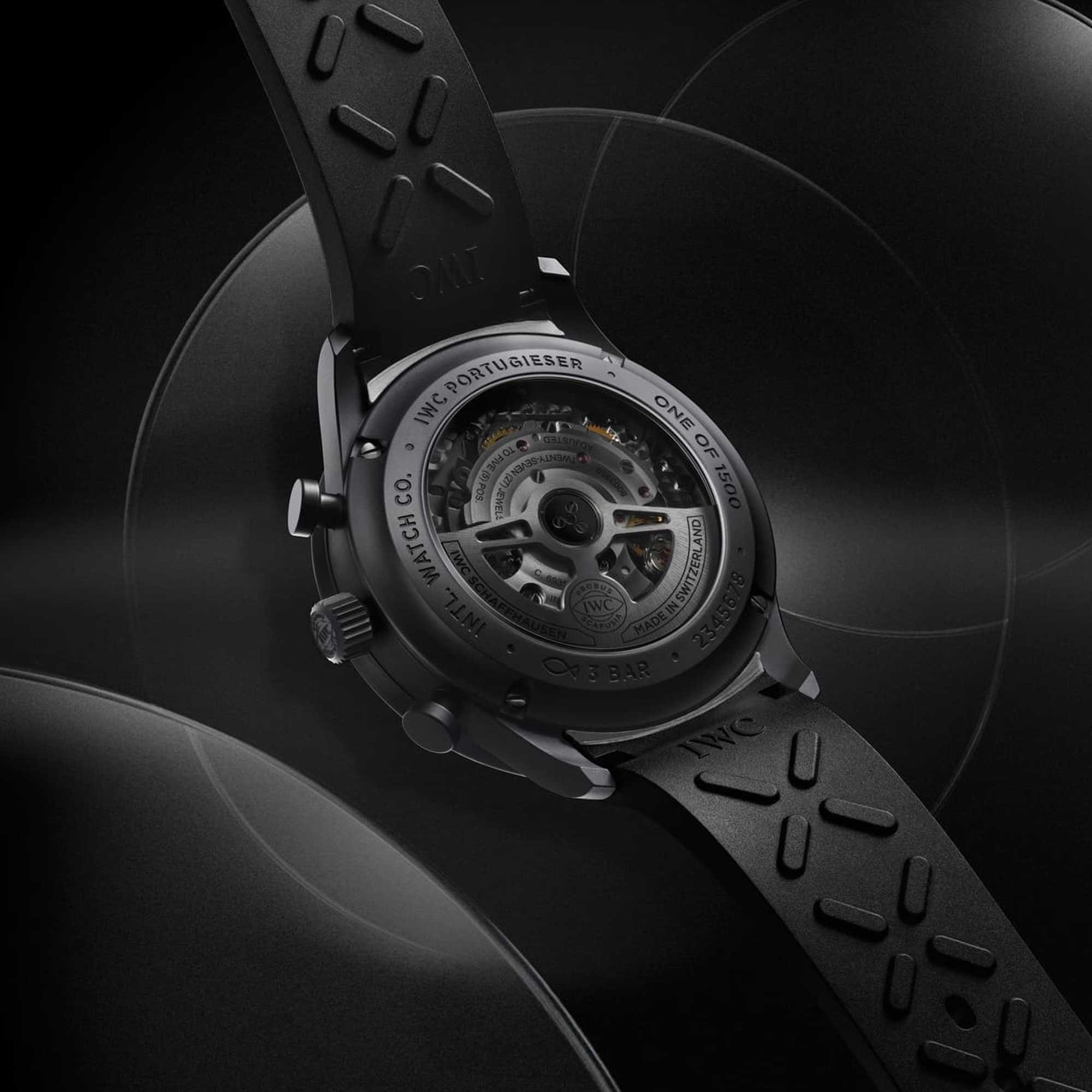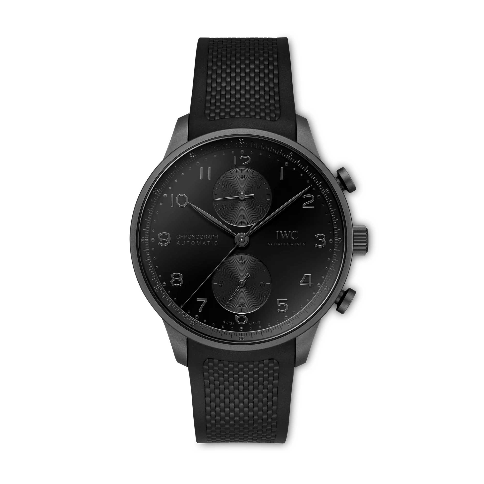 A shape that is instantly recognizable, even as a mere shadow: in what marks its most creative reimagining of a timeless classic, IWC Schaffhausen unveils the Portugieser Chronograph Ceratanium®. Released in a limited edition of 1,500 pieces, this all-black execution of the iconic chronograph combines a Ceratanium® case with a black dial and a black textured rubber strap.