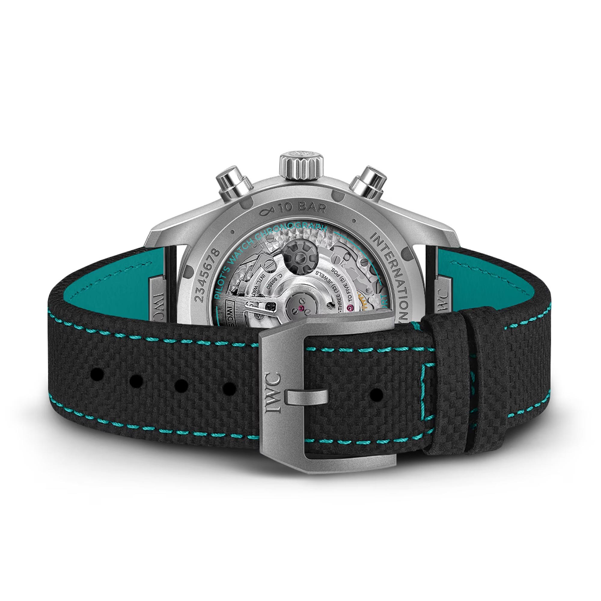 Immerse in the captivating blend of form, function, and fascination with the IWC Schaffhausen Pilot's Chronograph 41mm Edition "Mercedes-AMG Petronas Formula One Team" Men's Watch IW388108. With its robust Automatic movement, this masterpiece epitomises the height of horological sophistication. The opulent black dial, adorned with distinct numerals and batons, is protected by a strong sapphire crystal glass, offering a striking contrast against the gleaming silver of the titanium watch case.