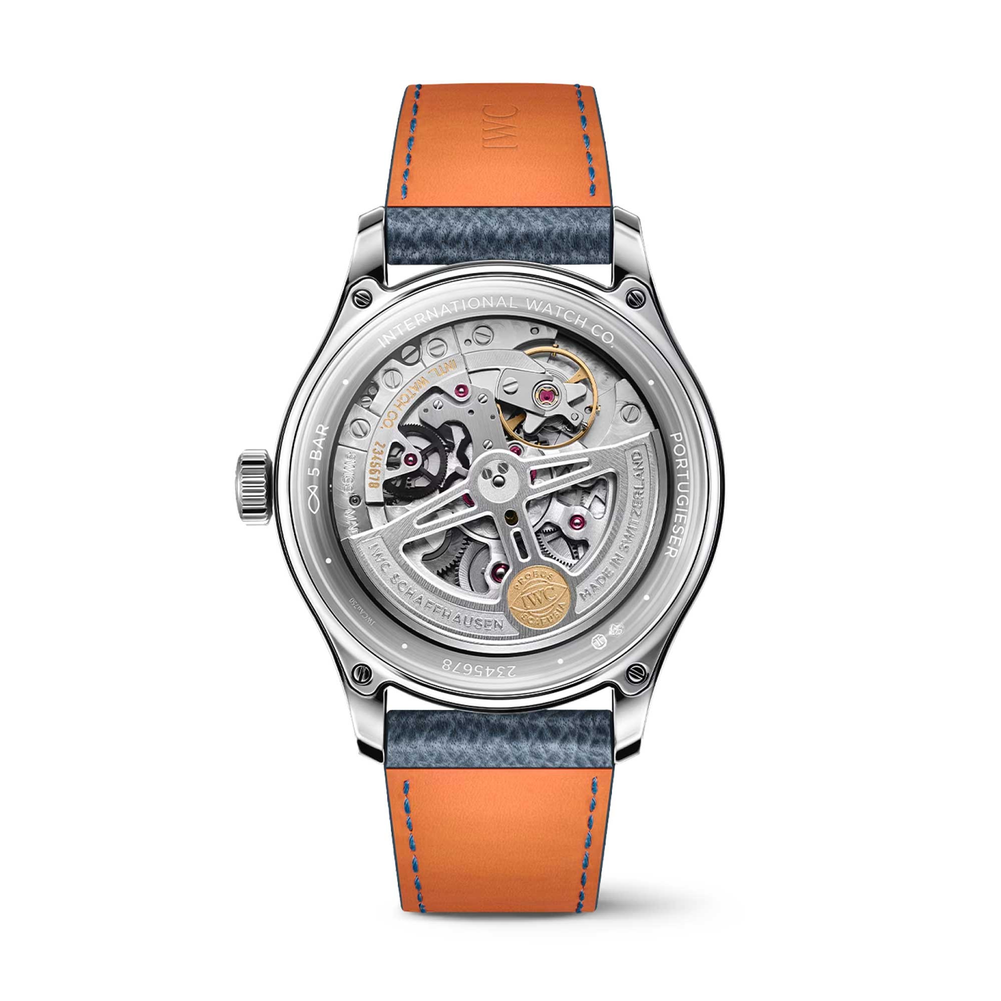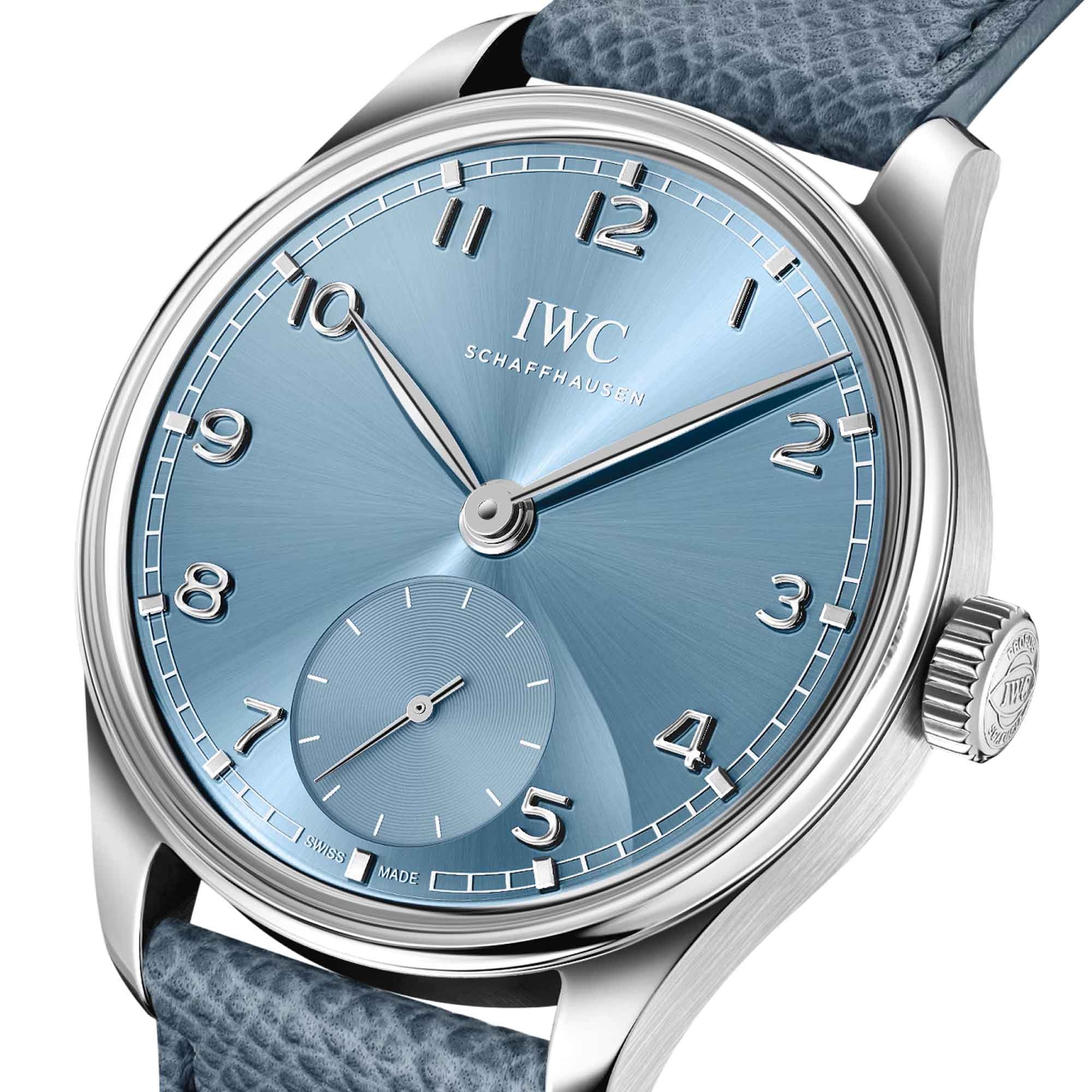 Finally, the appliques are individually mounted on the dial by hand. The Portugieser Automatic 40 is powered by the IWC-manufactured 82200 caliber. Featuring parts made of zirconium oxide ceramic, the automatic Pellaton winding system builds up a power reserve of 60 hours in the mainspring. The watch is fitted with a blue calfskin strap from Santoni with an 18-carat white gold pin buckle.