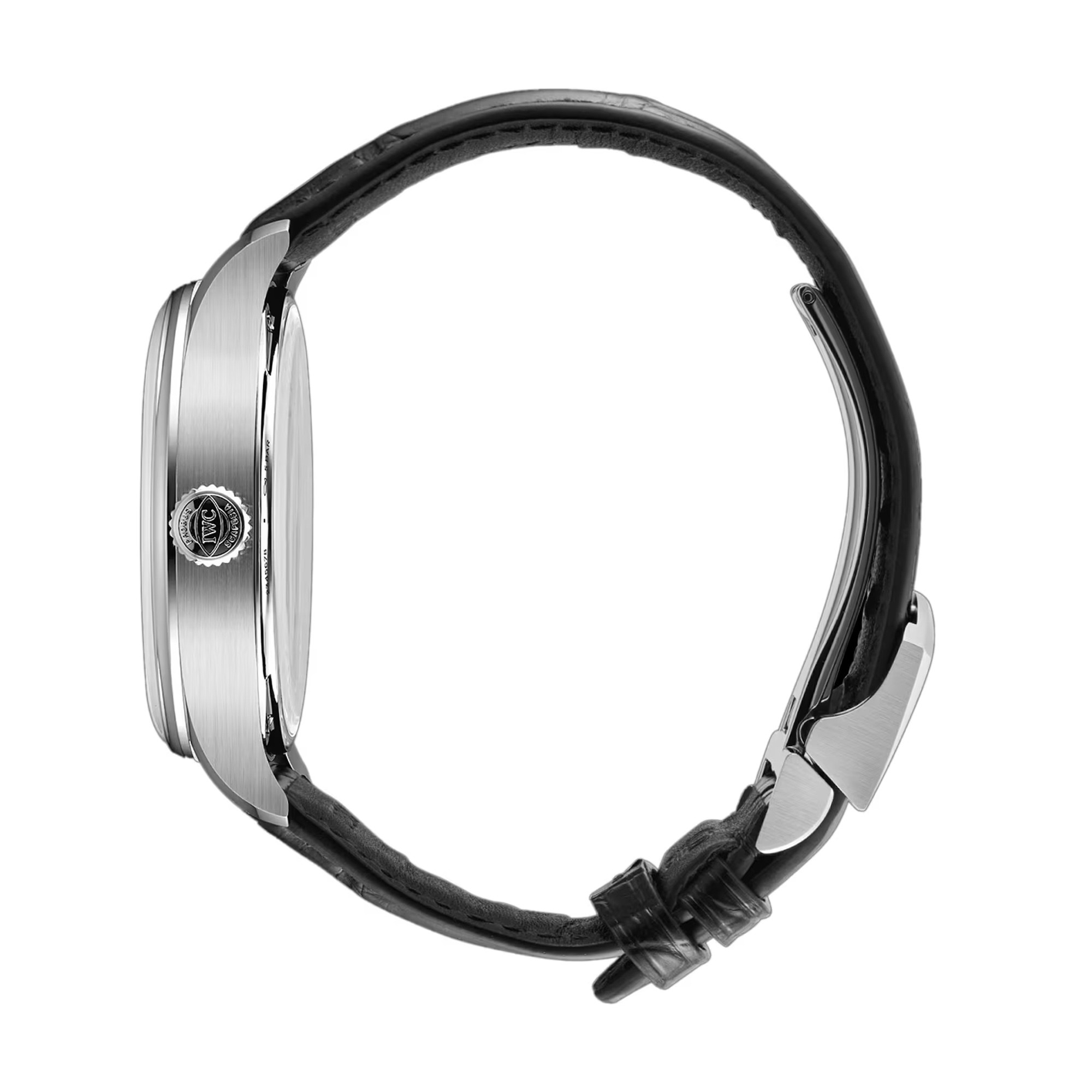 Finally, the appliques are individually mounted on the dial by hand. The Portugieser Automatic 42 is powered by the IWC-manufactured 52011 caliber, which is elaborately finished with circular Geneva stripes. The Pellaton winding system is reinforced with virtually wear-free zirconium oxide ceramic components and builds up a power reserve of seven days (168 hours) in two barrels. The watch is fitted with a black alligator leather strap with a stainless steel folding clasp.