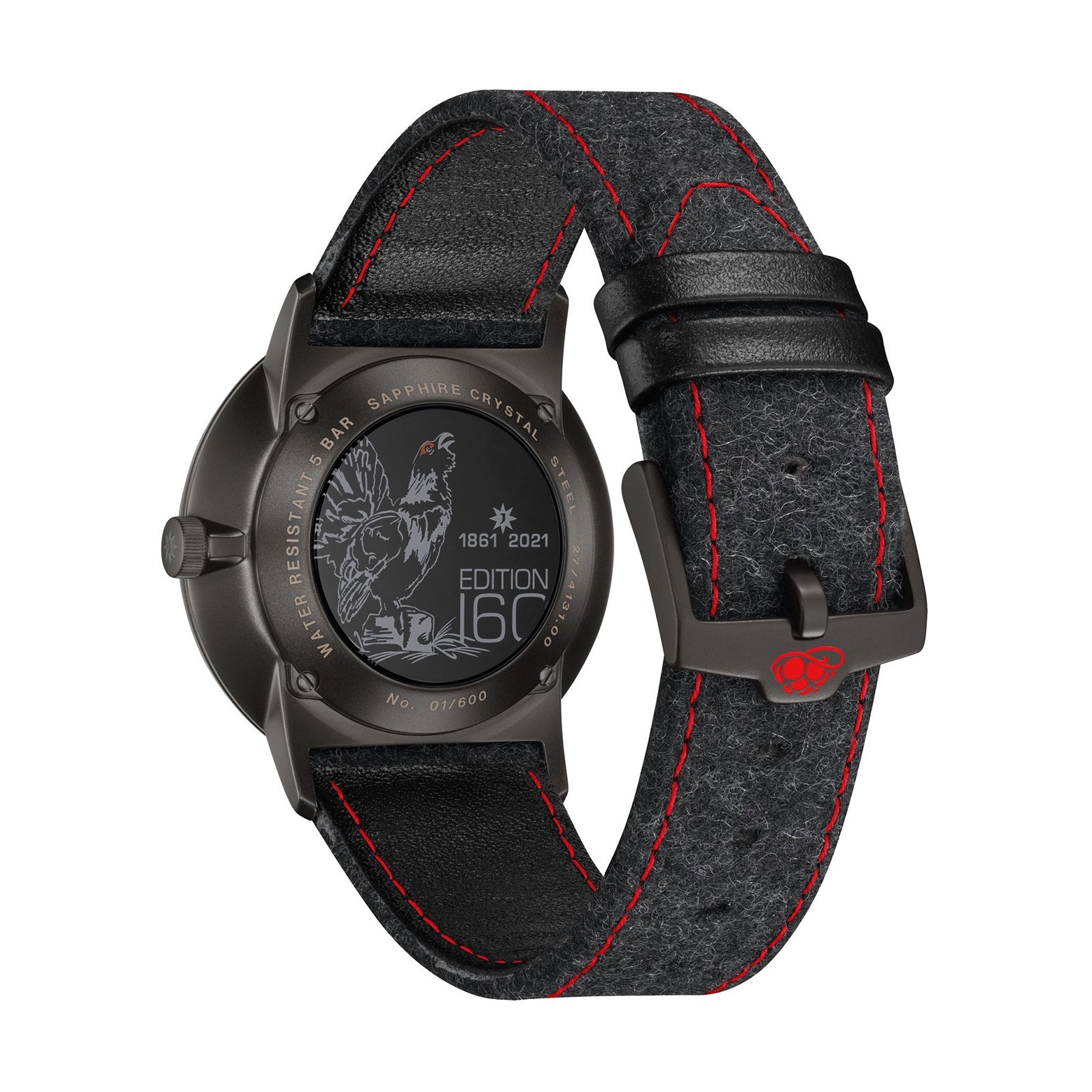 To celebrate Junghans’ 160th anniversary, the German watch manufacturer has launched the Form A Edition 160 Limited Edition Mens Watch 27/4131.00. Junghans’ passion for German industrial design is characterised through the sleek, futuristic aesthetic of this limited edition watch. Generated by a self-winding movement J800.2 with a power reserve of up to 38 hours, it is expertly crafted from stainless steel with matte black PVD coating. With a black dial measuring 39.3mm protected by flat sapphire crystal glass with anti-reflection coating, this contemporary men’s watch is complete with wool and leather strap and pin buckle fastening.