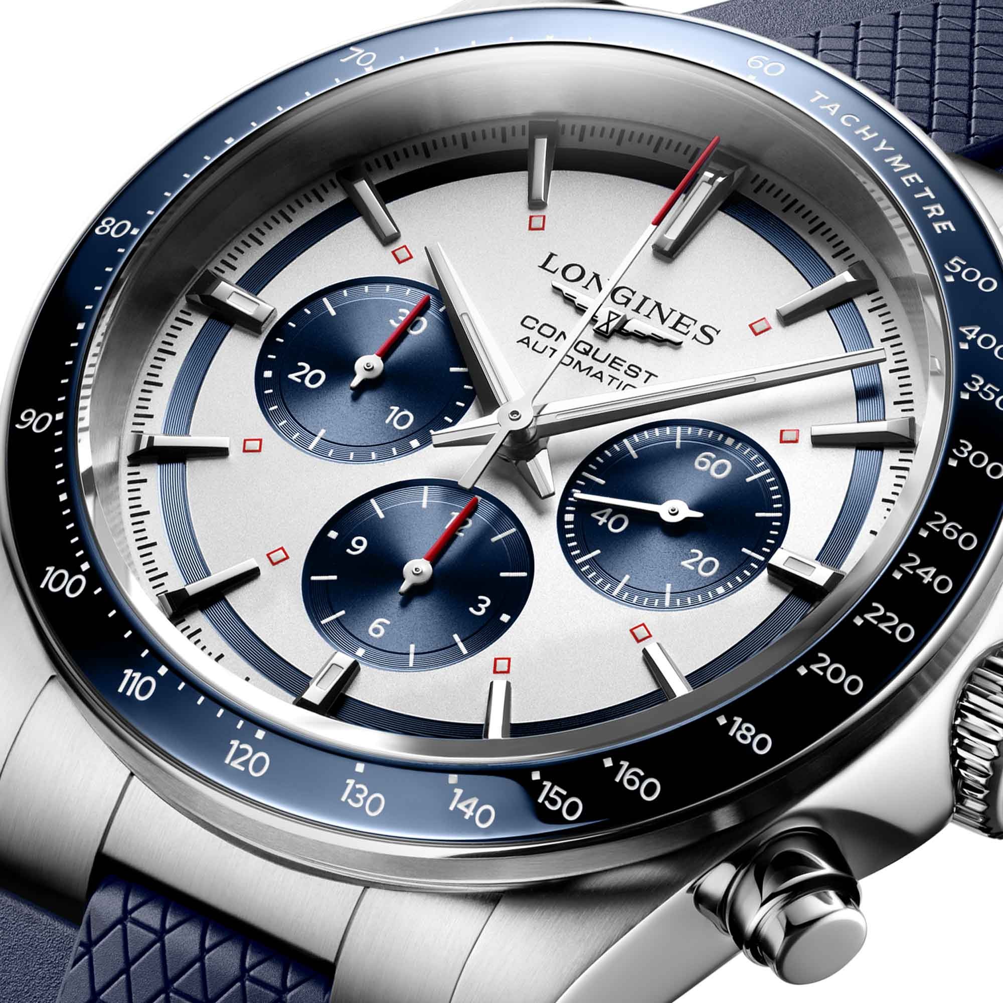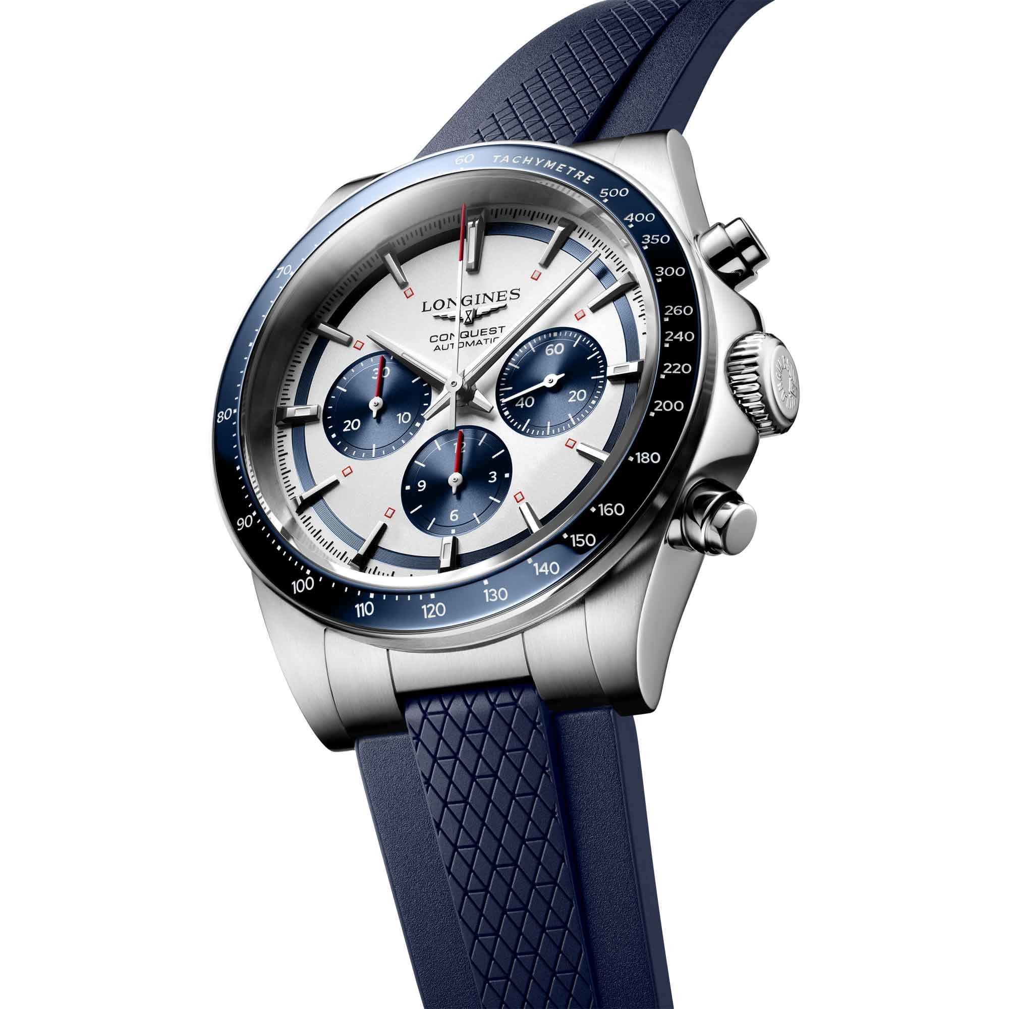 Embrace the elegance of the Longines Conquest 42mm Men's Chronograph Watch L38354989, a testament to timeless design and unparalleled craftsmanship that complements every facet of your lifestyle.
