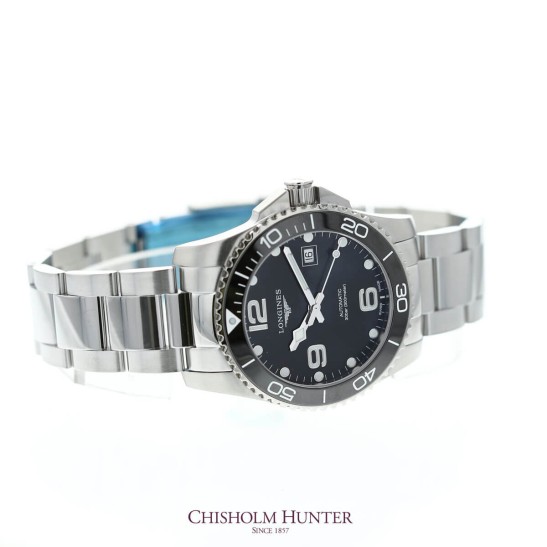 Founded in 1832, the famous Swiss watch brand Longines boasts a long tradition of high performance timepieces. The HydroConquest collection, adapted from the fame Longines Conquest range, known for high performance and strong water resistance makes any watch from this collection would make a fine addition sports enthusiasts demanding style and precision on land or in water. Feautring a 41mm stainless steel and ceramic case with a Black dial, luminous hands and indices and integrated date window, this Longines Hydro Conquest mens Watch L37814566 is ideal for those who want an elegant yet stylish sport-inspired watch. Fitted with a stainless steel bracelet with deployment clasp, this timepiece is powered by an automatic movement and water resistant up to 300 metres.