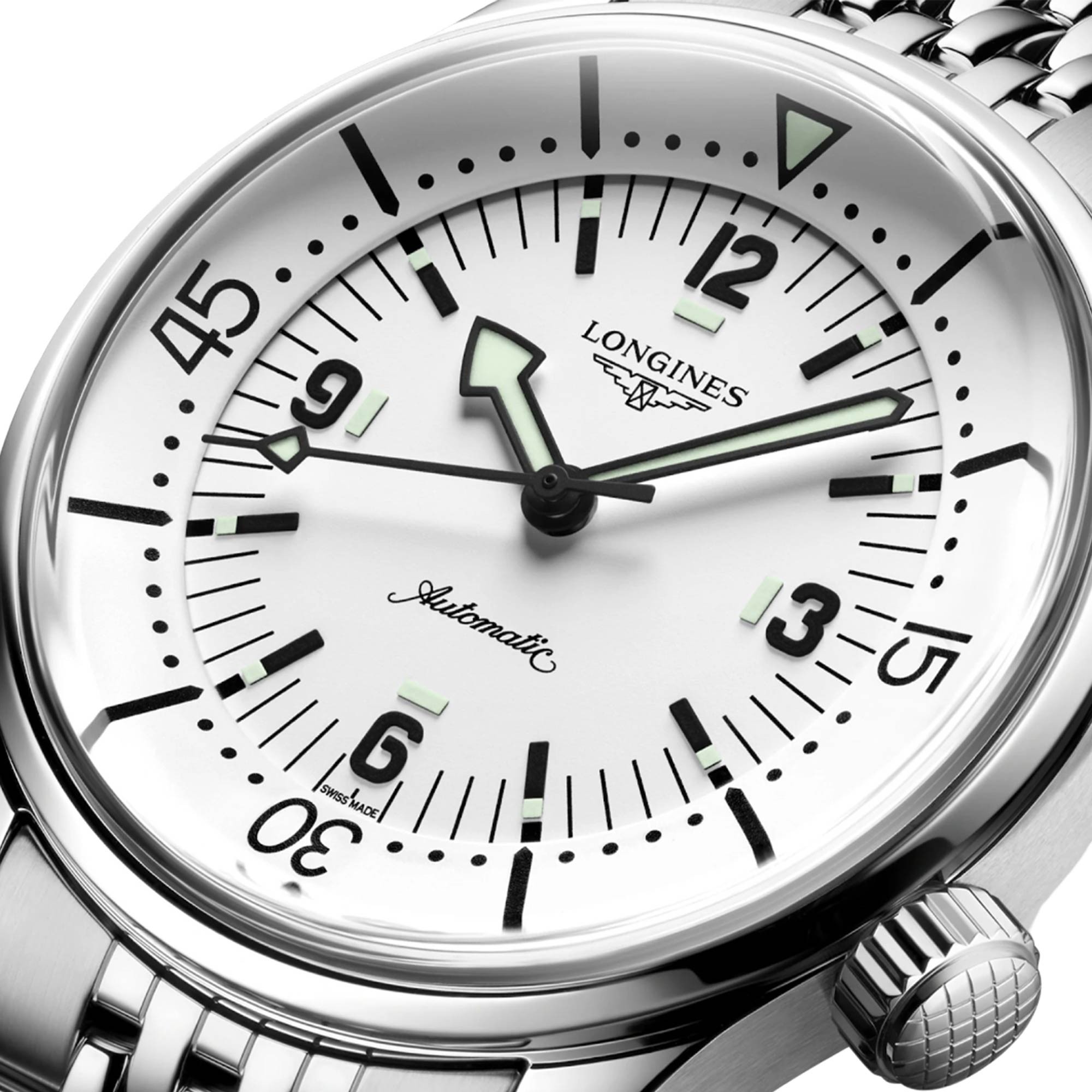 Invented by LONGINES, the position of the bezel inside the case protects it from accidental manipulation and shocks that could alter its settings. These true tool watches are powered by exclusive LONGINES calibres equipped with a silicon balance-spring.