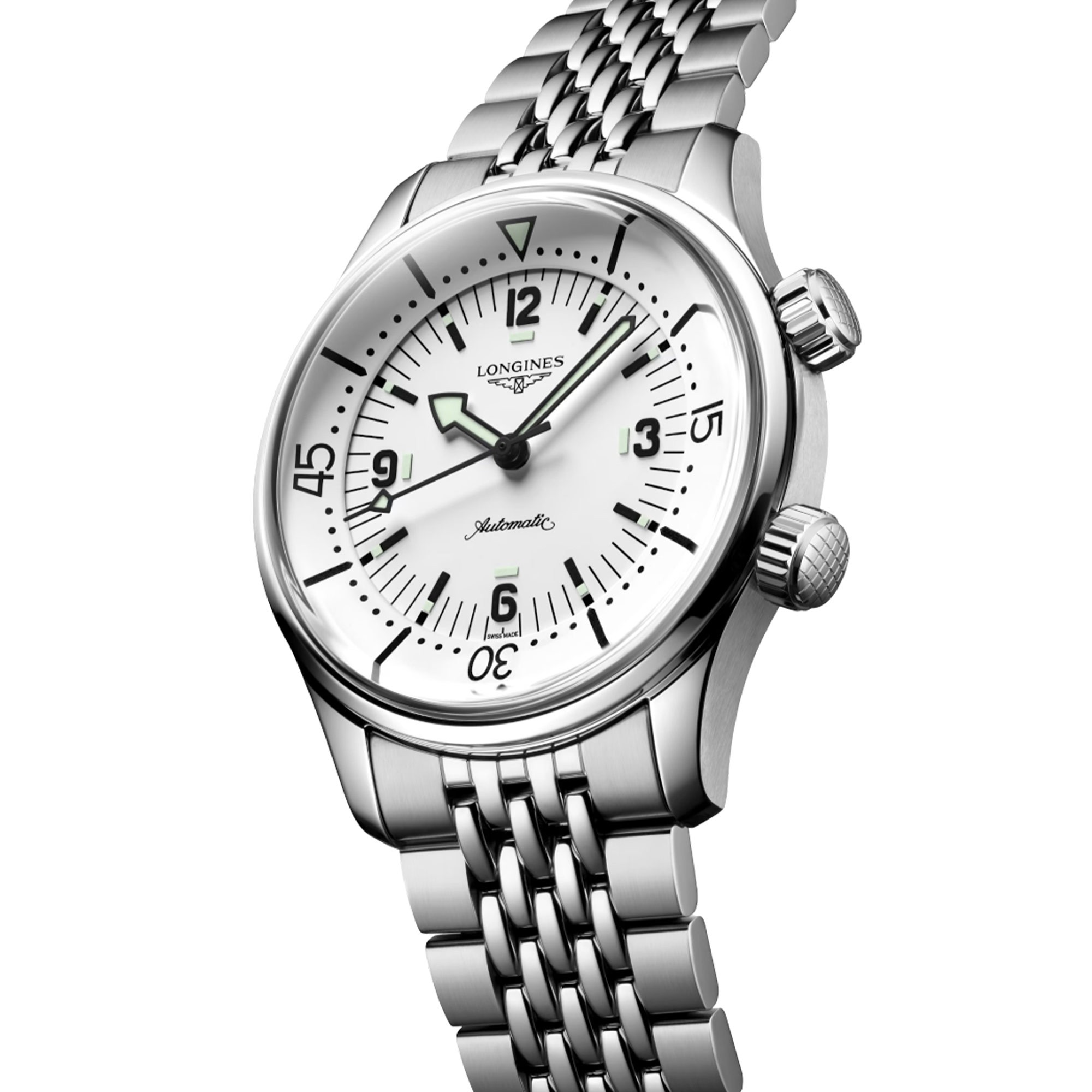 Originally designed for underwater exploration, the LONGINES Legend Diver is equally at home on land or underwater. With its timeless design and cutting-edge performance, it has been a true icon of watchmaking since 1959. At first glance, it is distinctive because of its two crowns and internal rotating bezel.