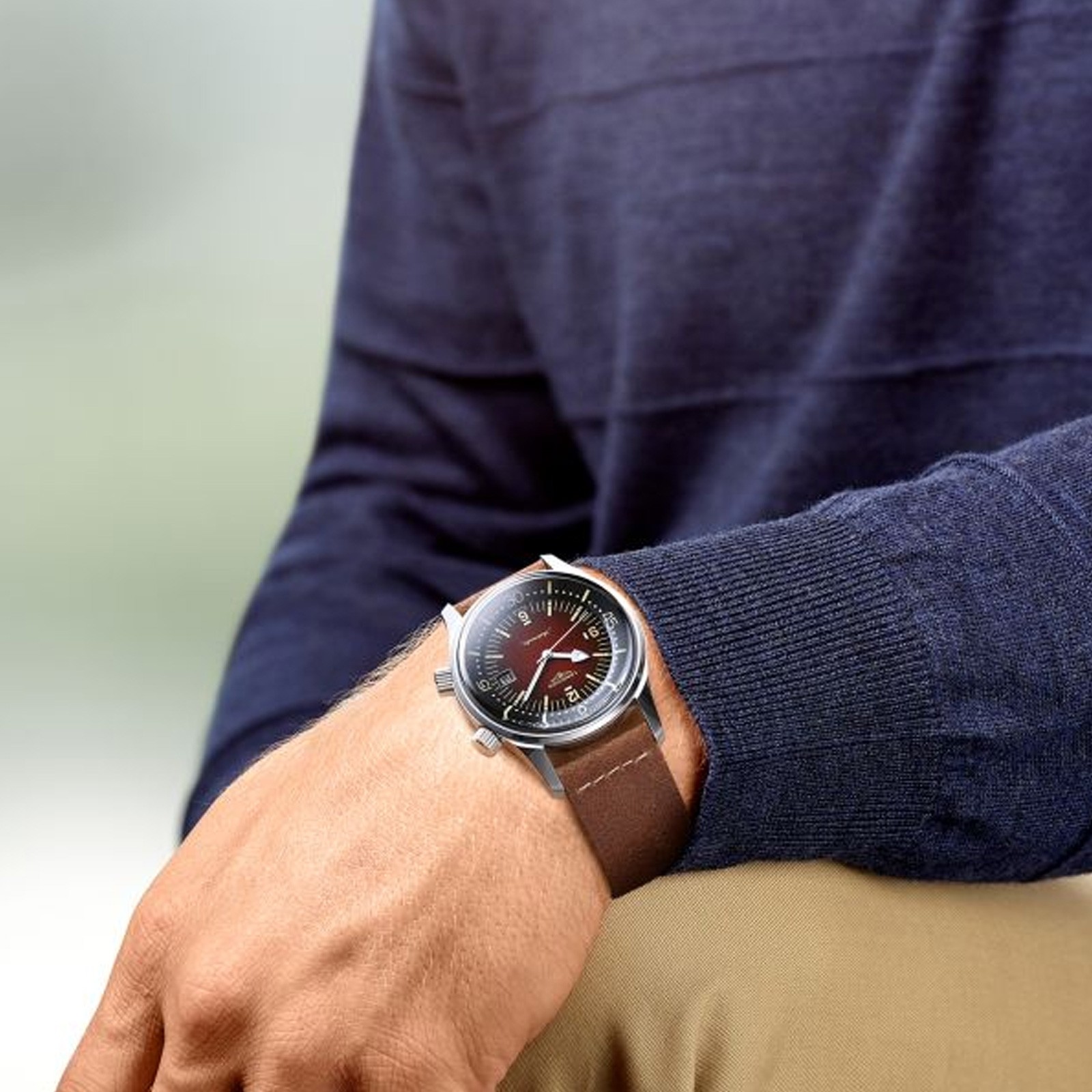 The Longines Heritage collection is a touching tribute to the pioneering spirit that has inspired Longines designers since the start. This Longines Legend Diver 42mm Mens Watch L3.774.4.60.2 features a large 42mm case, crafted from polished stainless-steel. The round, brown sunburst dial features painted Arabic numerals and indexes and silvered polished hands, filled with Super-LumiNova for visibility in all terrains. Powered by an automatic, self-winding mechanical movement beating at 25'200 vibrations per hour, with a power reserve of approximately 72 hours. Water resistant up to 300 metres. Presented on a brown leather strap, complete with a buckle.
