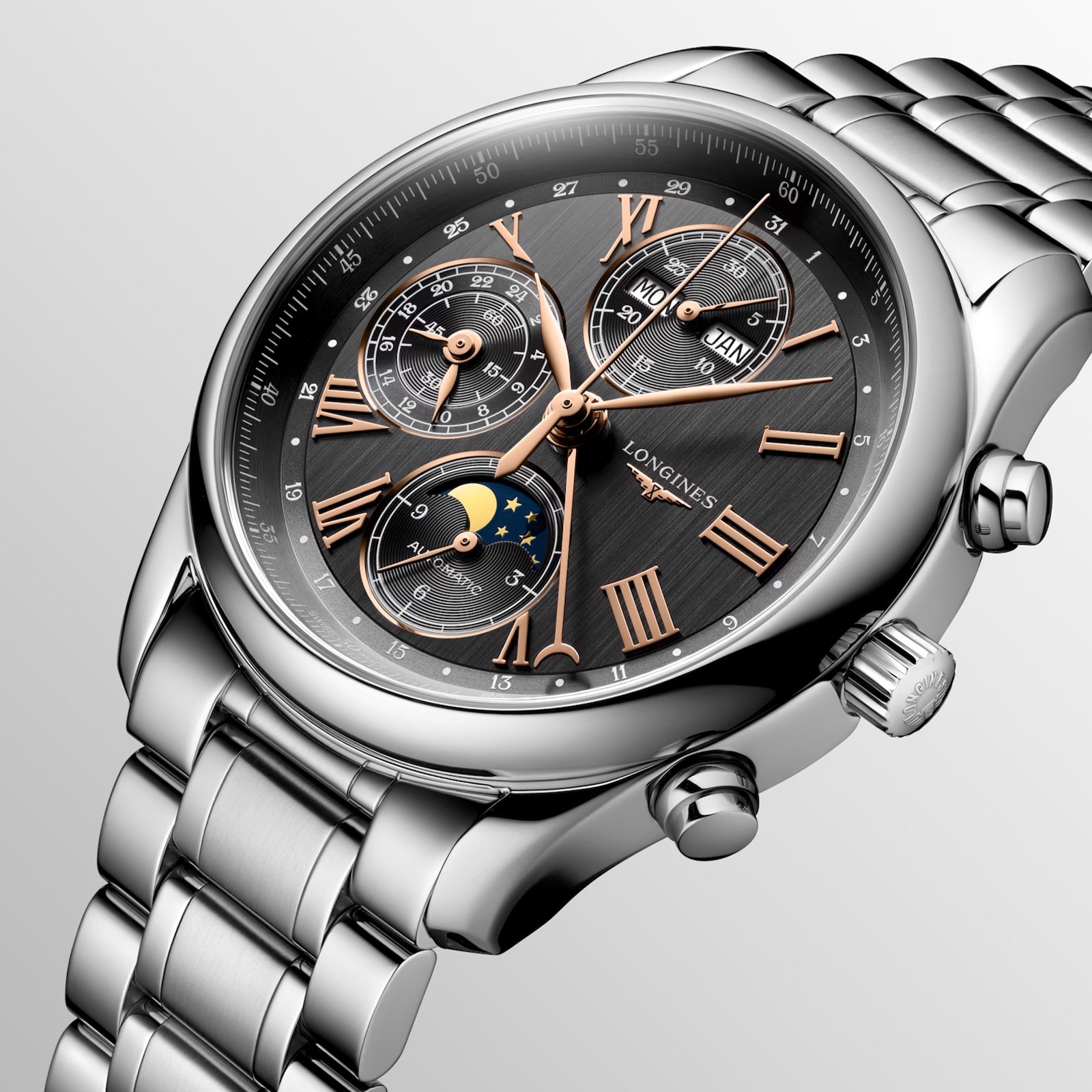 Introducing the Longines Master 40mm Men's Watch L26734616 – a masterpiece that exudes elegance, sophistication, and timeless style. Crafted with utmost precision and powered by an automatic movement, this watch is a true testament to Longines' commitment to creating fine timepieces.