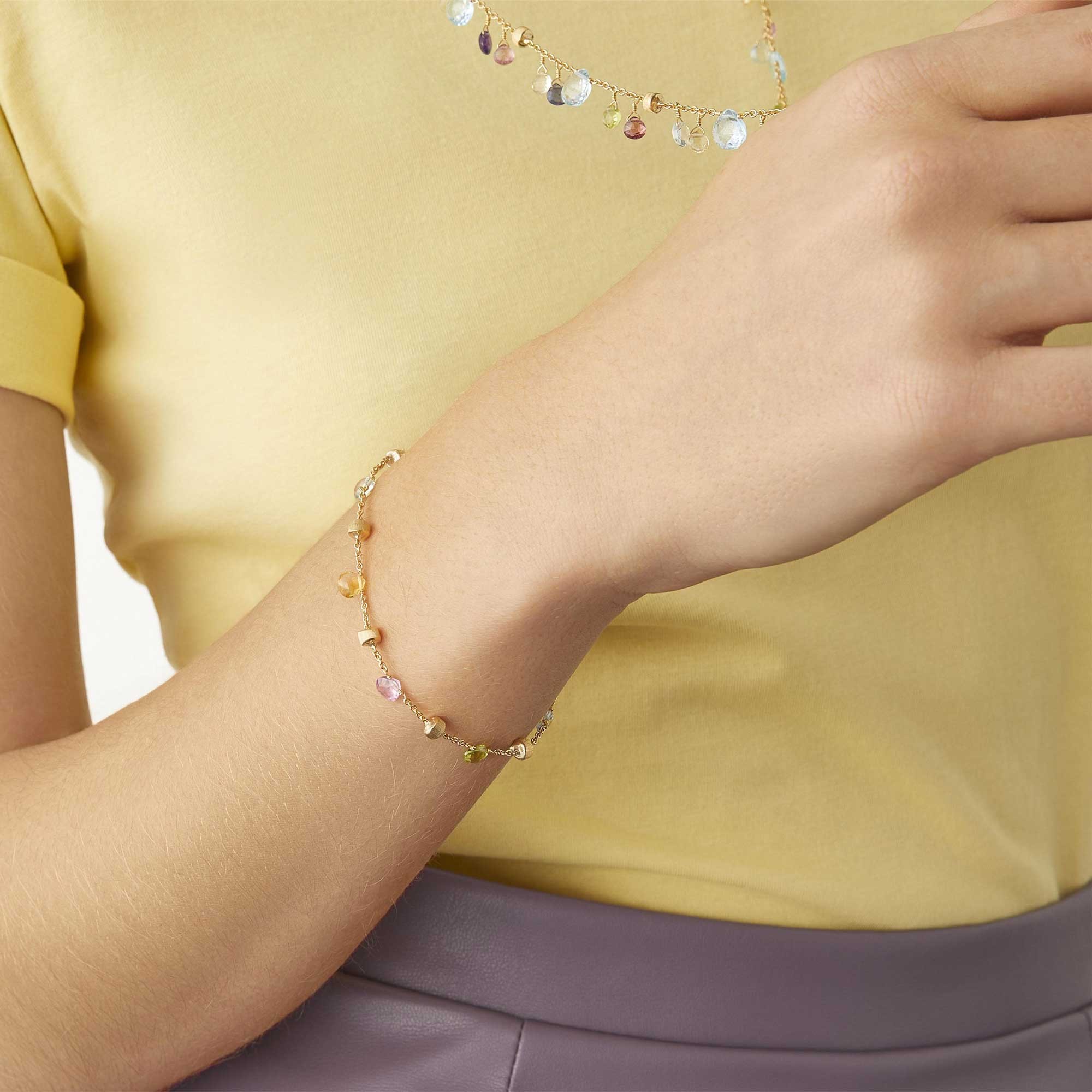Designed for everyday wear, this bracelet offers lasting quality and beauty. Its lightweight construction ensures comfort, while the mixed gemstone design brings a refreshing energy. Elevate any collection with this striking piece from Marco Bicego, a brand synonymous with handcrafted Italian luxury.