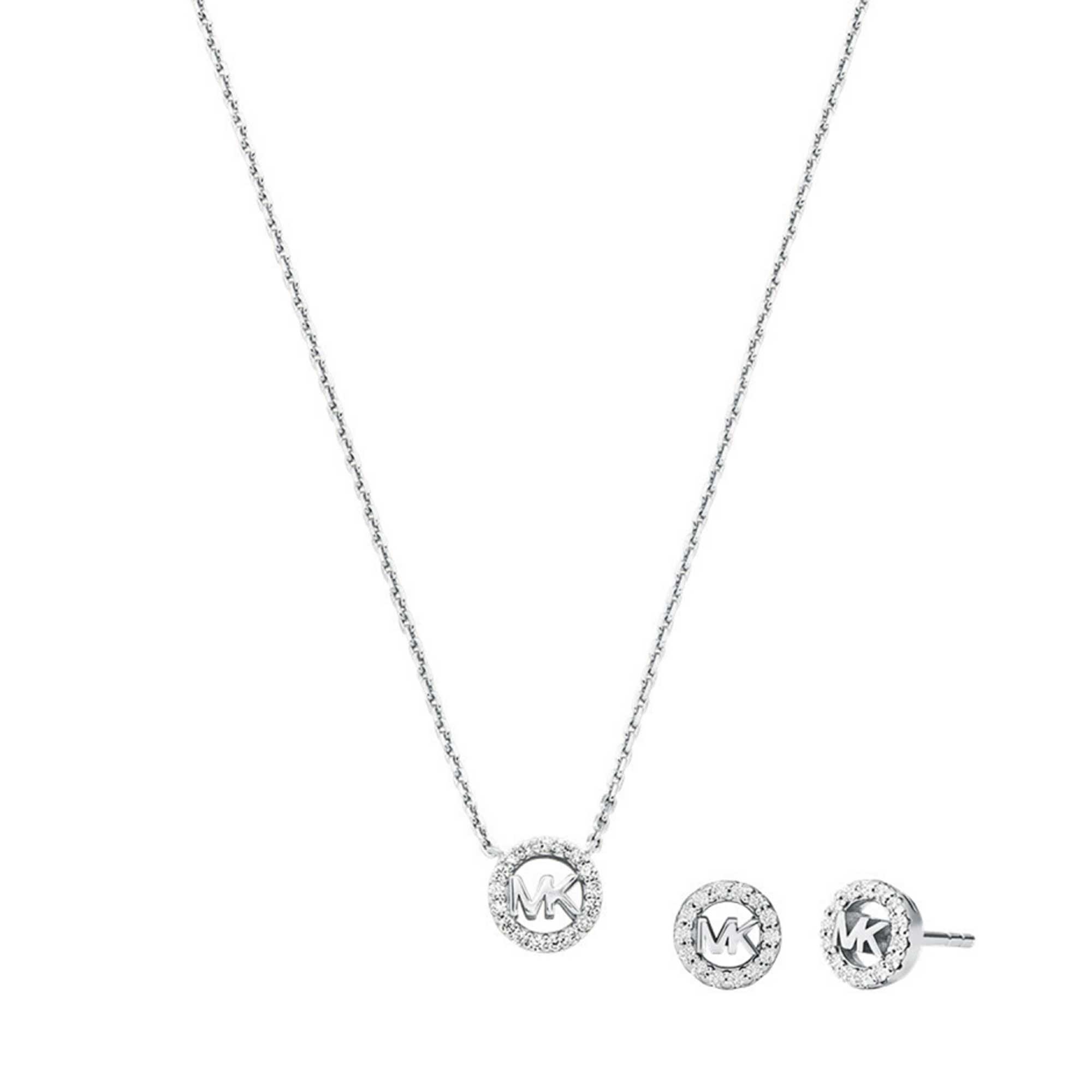 Fulton Pavé Logo Charm Necklace and Earrings Gift Set MKC1839SET
