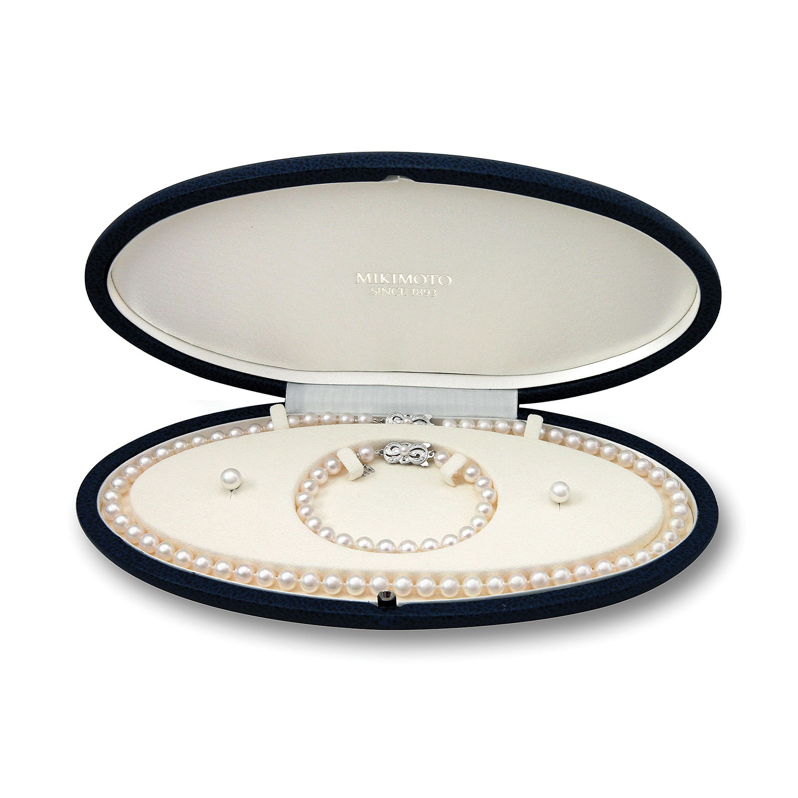 Imagine the joy and admiration as she adorns herself with the Mikimoto Akoya Graduated Pearl Earrings, Bracelet, Necklet Set UZ 80718 W SET - a gift that speaks volumes of your affection and appreciation. It is a treasure that will be cherished for generations, a symbol of everlasting beauty and elegance.