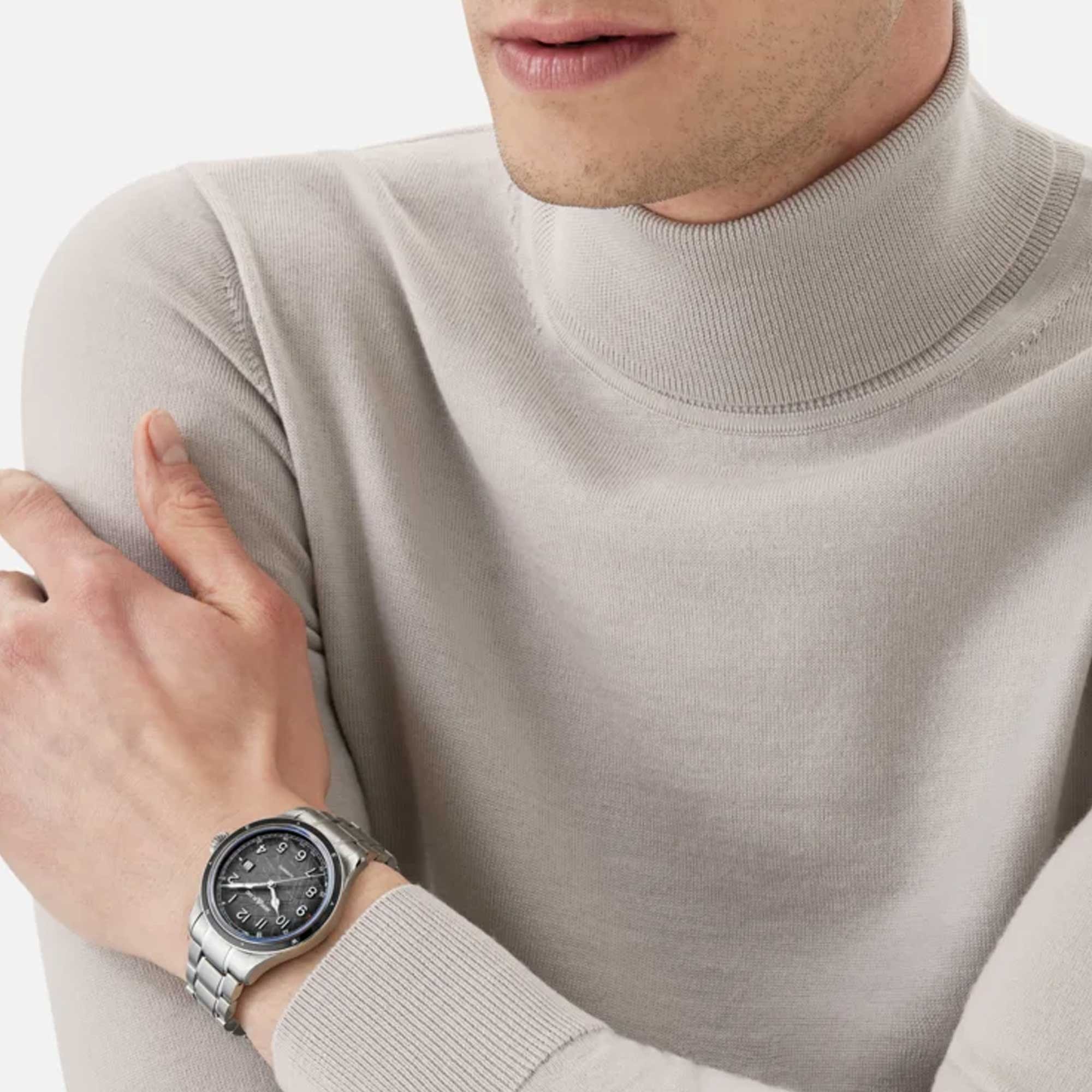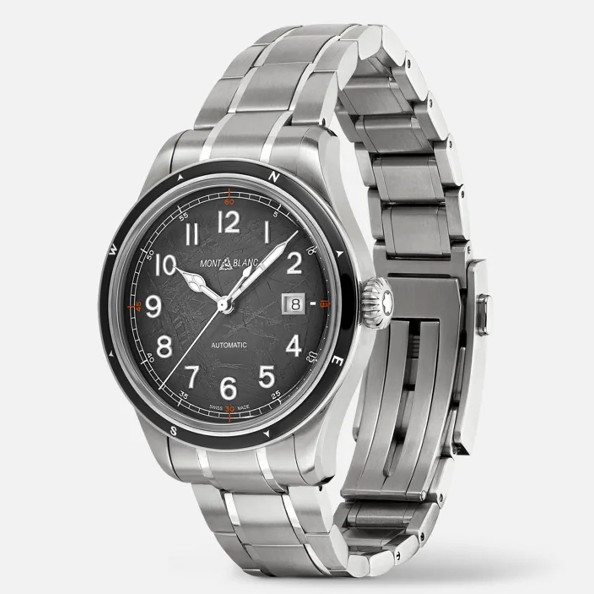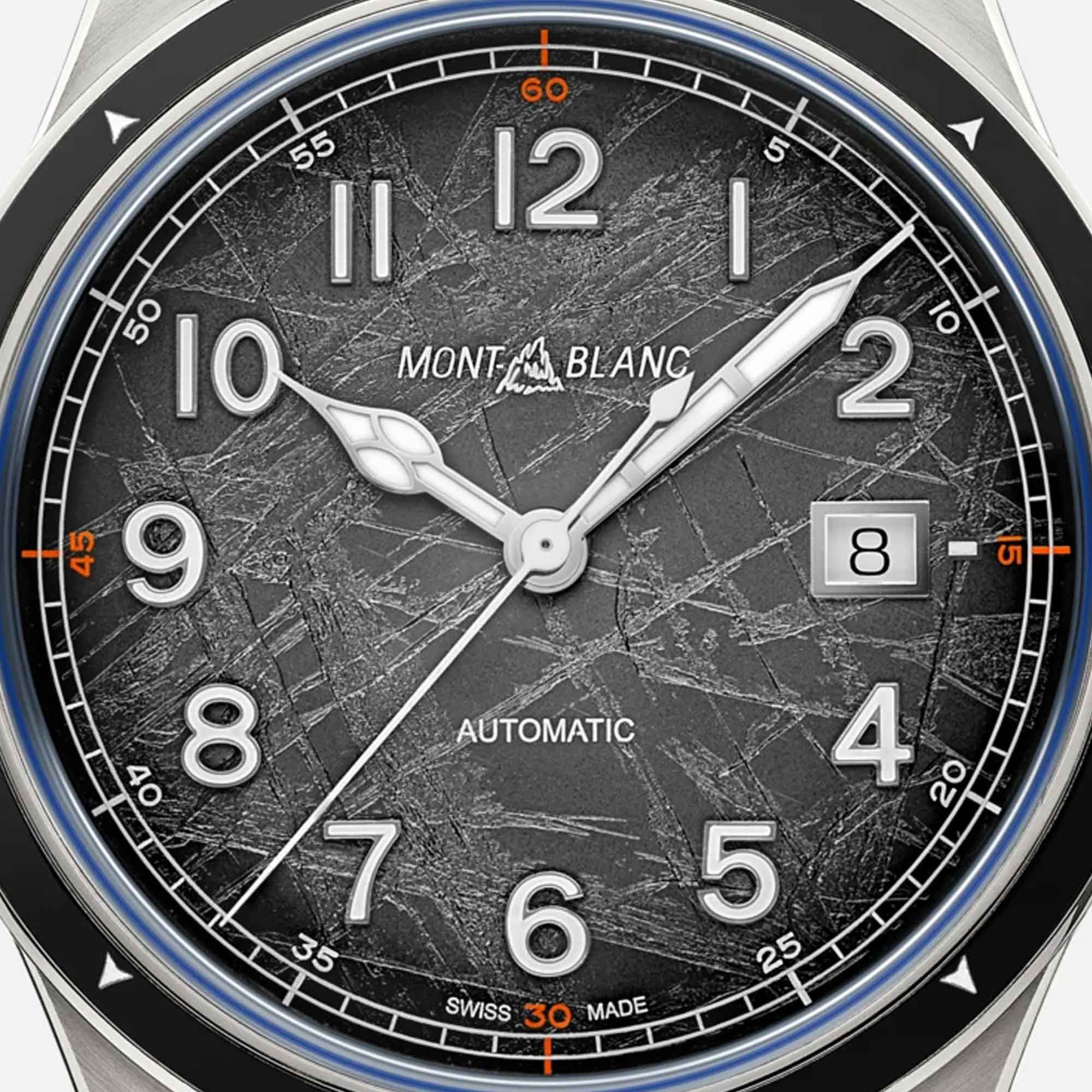 Paying tribute to the world's highest peaks and the alpinists who dare to climb them enduring extreme conditions, the Montblanc 1858 Automatic Date 0 Oxygen The 8000 is housed in a 41mm stainless steel case totally devoid of oxygen. This has several advantages for explorers by eliminating fogging and preventing oxidization, thus allowing the movement to last far longer with greater precision. The timepiece is powered by the automatic calibre MB 24.17 and comes with a black ceramic bezel with luminescent cardinal points, a dark grey Sfumato glacier patterned dial with orange accents, blue luminescence and a case back featuring an engraving of the 'Spirit of Exploration'. Like the other models in this capsule collection, The Montblanc 1858 Automatic Date 0 Oxygen The 8000 comes with an interchangeable tapered stainless steel bracelet with a fine adjustment system.