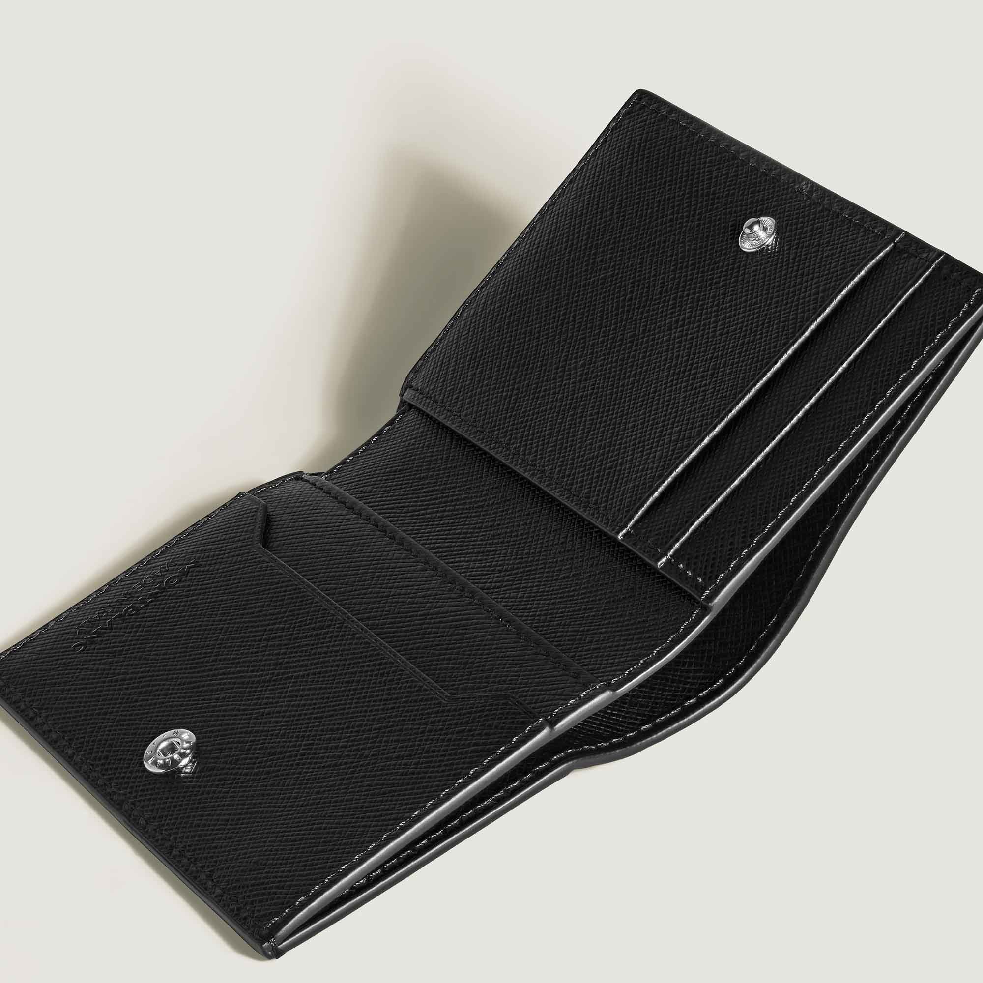 The Montblanc 4cc Sartorial Mini Wallet MB220382 offers three credit card slots that keep your essentials organised. A dedicated banknote compartment ensures your cash remains secure and accessible. Additionally, two extra pockets provide extra space for receipts or business cards, making it easy to carry everything you need for daily outings.