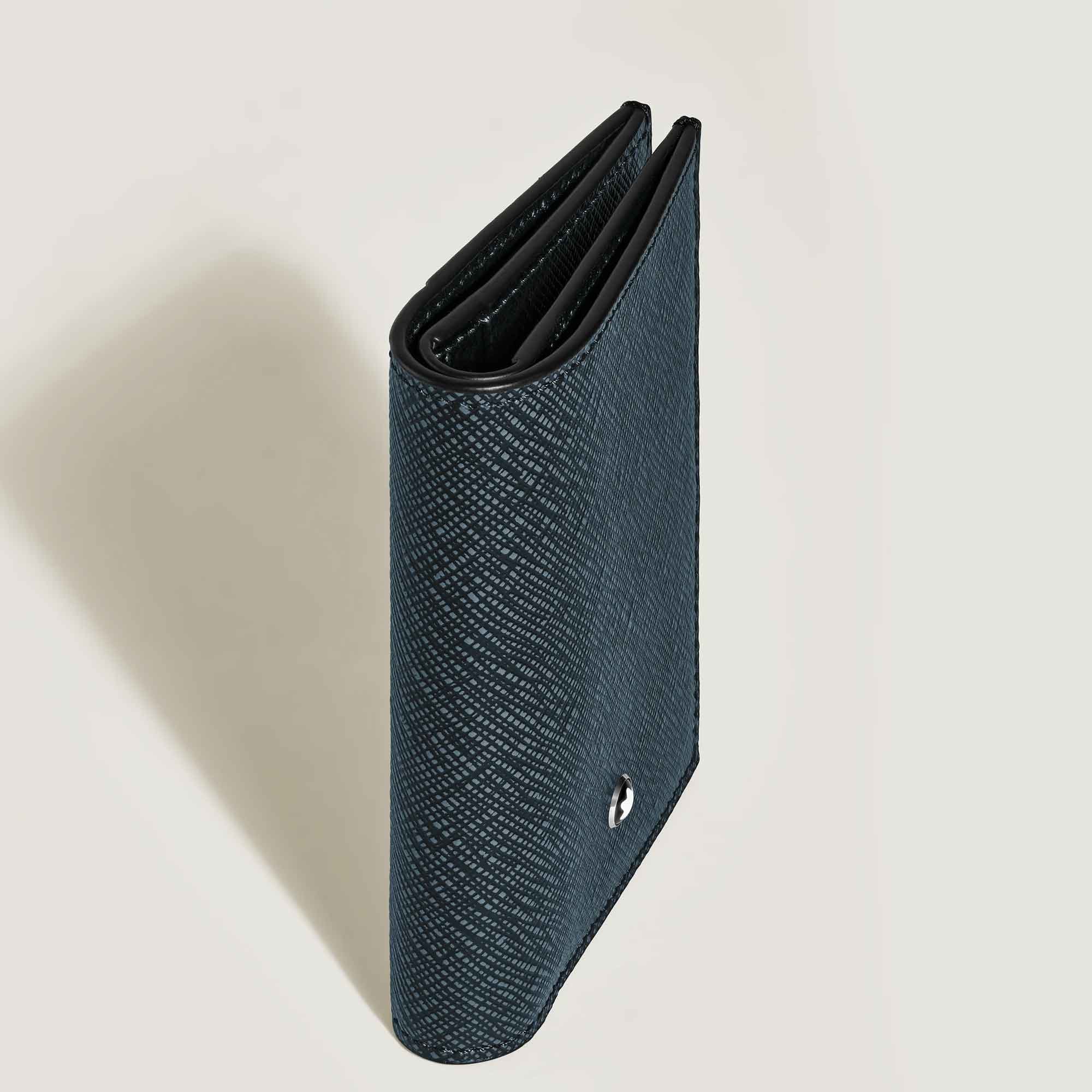 Introducing the Montblanc 4cc Sartorial Mini Wallet MB220382, a perfect blend of practicality and elegance. Crafted from embossed Sartorial leather, this compact wallet features a sophisticated combination of blue and black, making it an ideal accessory for the discerning gentleman.