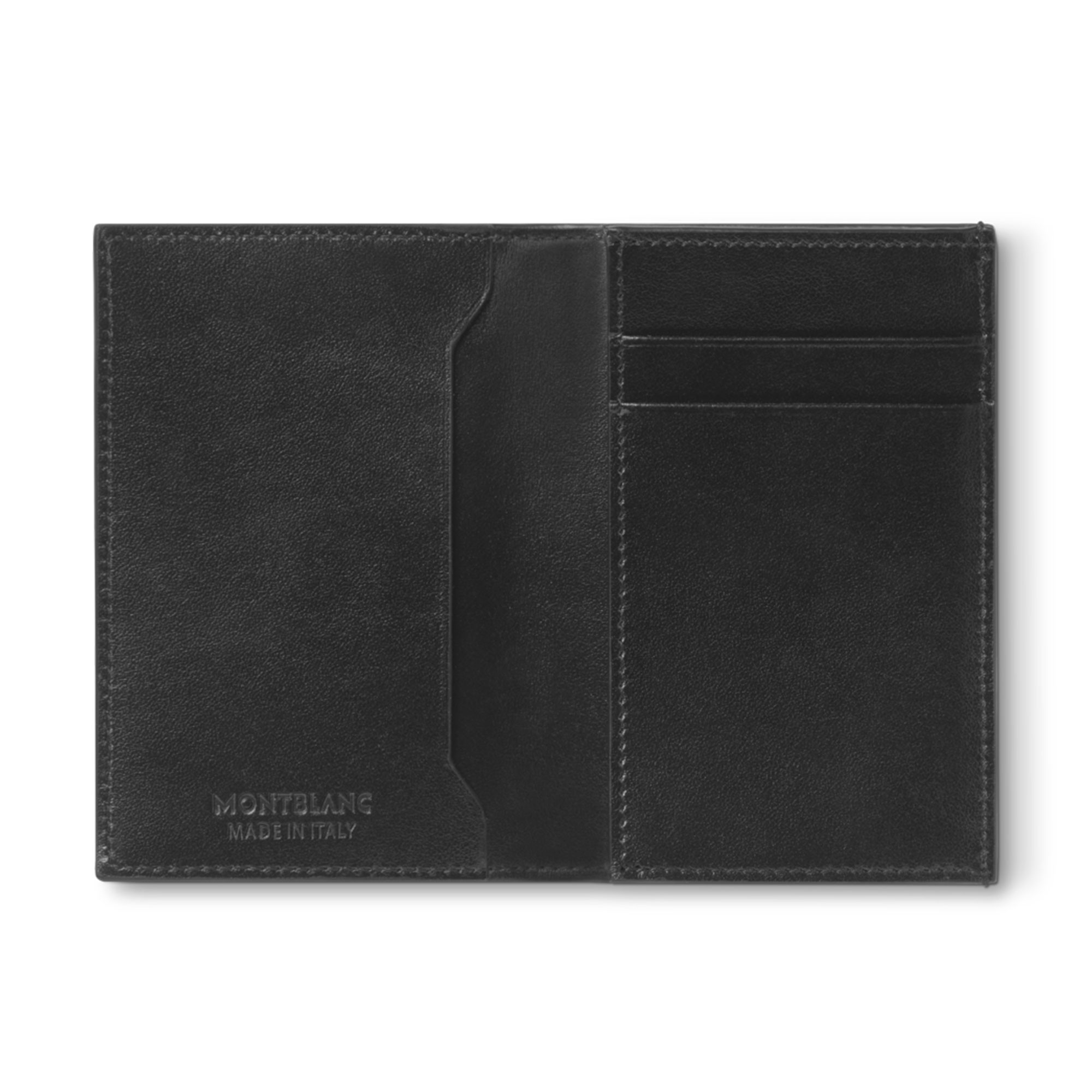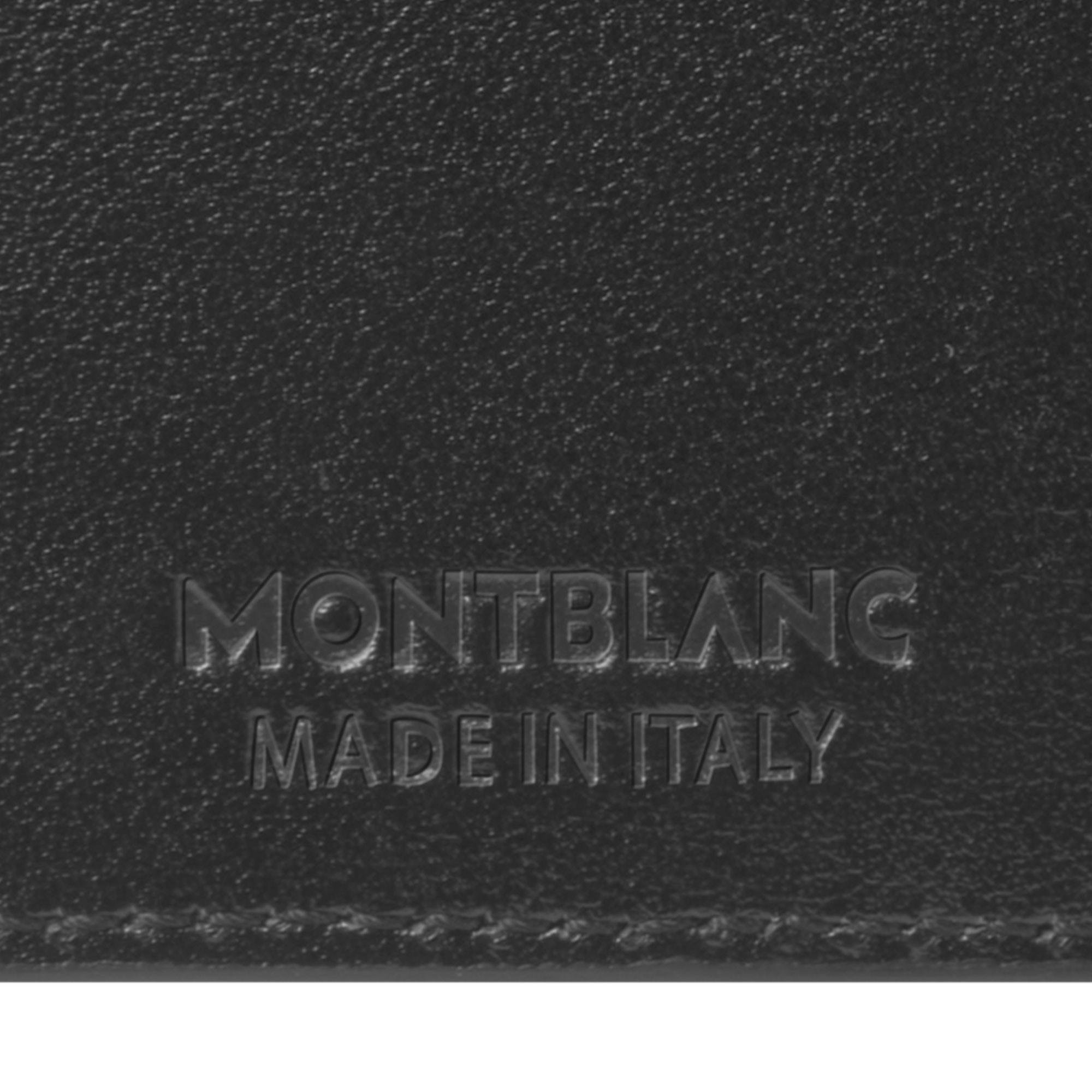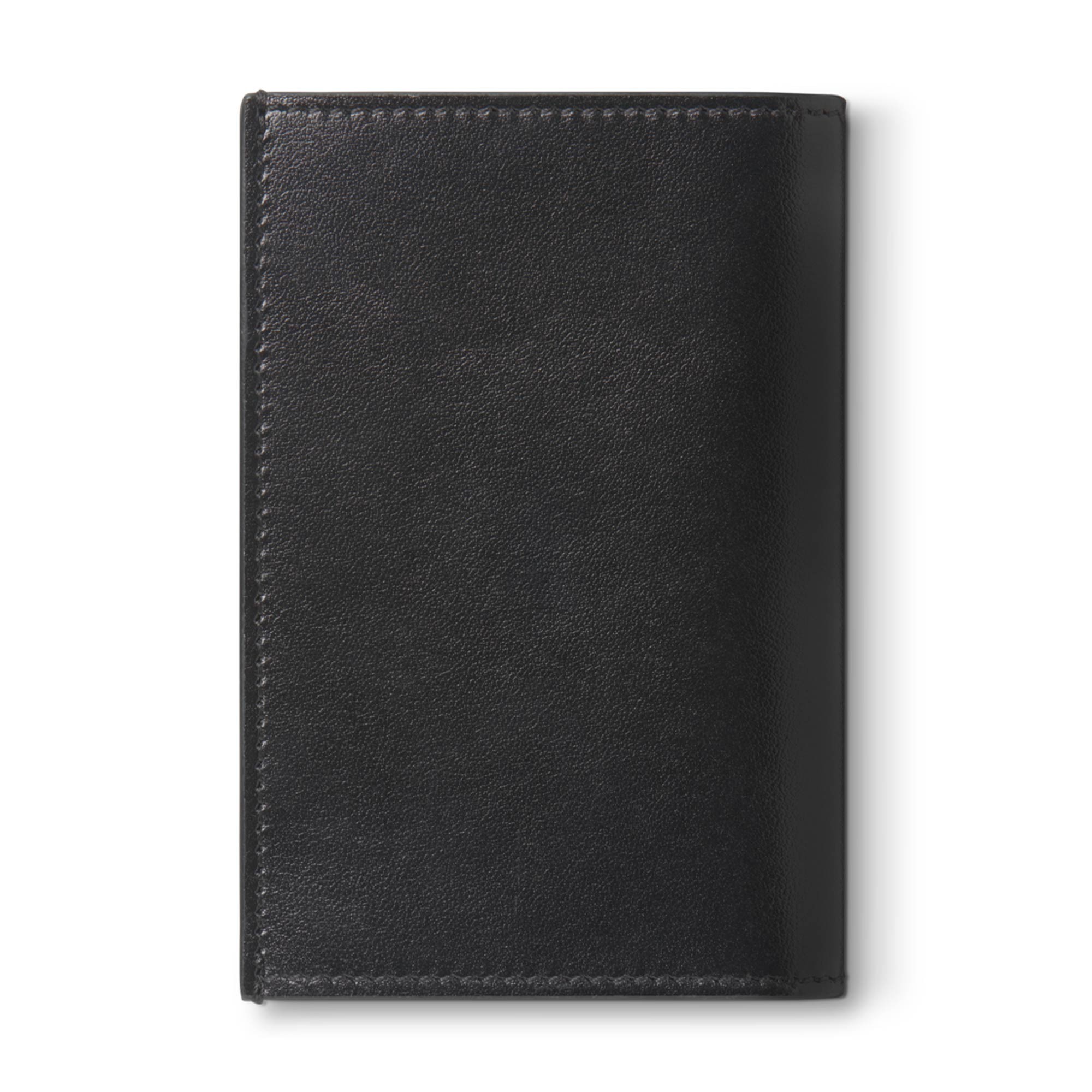 Crafted from smooth black leather, this sleek business card holder can accommodate two credit card in dedicated slots, with a generous compartment for business cards. There are also two additional pockets for folded notes or receipts. It's lined with black fabric and finished with the Montblanc emblem.