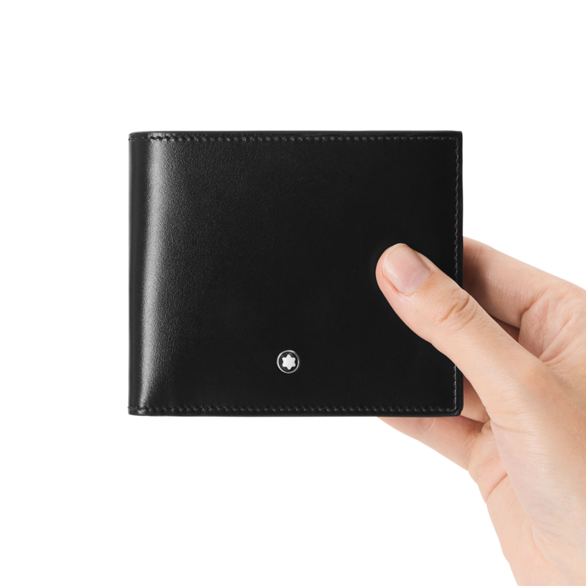 A compact leather wallet with a flap pocket for coins, the Meisterstück 4cc combines understated elegance with practical functionality. Designed for your everyday essentials, the wallet features four credit card slots, two compartments for banknotes, a coin case, plus an additional pocket for receipts. Crafted from sleek leather and lined with black fabric, it's finished with the Montblanc emblem.