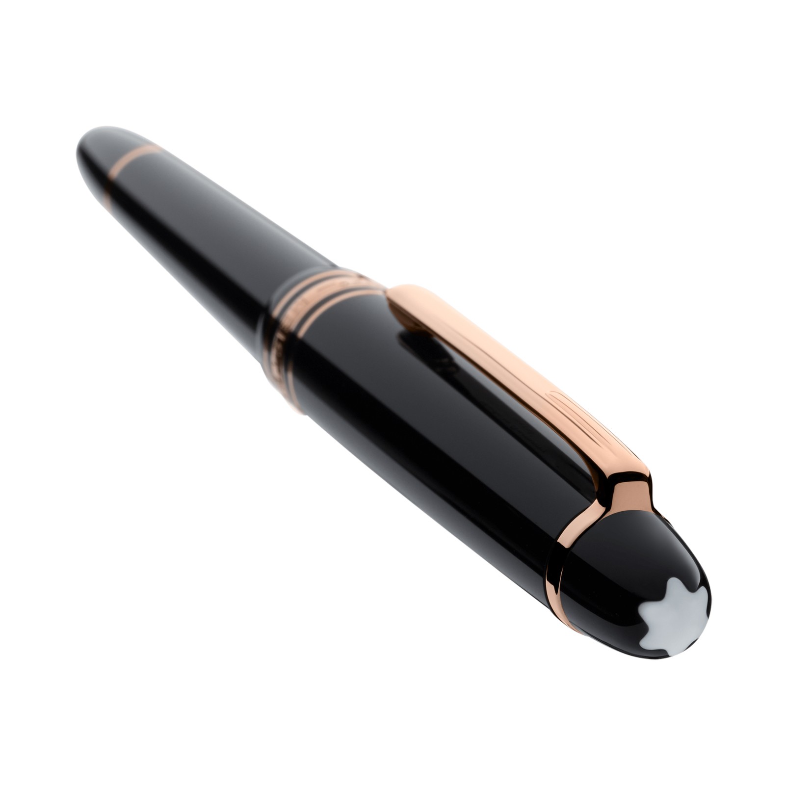 Montblanc's Meisterstück Classique Rose-Gold-coated rollerball pen, features a black cap and barrel with the iconic Montblanc emblem inlaid in the cap top, the Meisterstück collection has became a true luxury icon in writing culture.