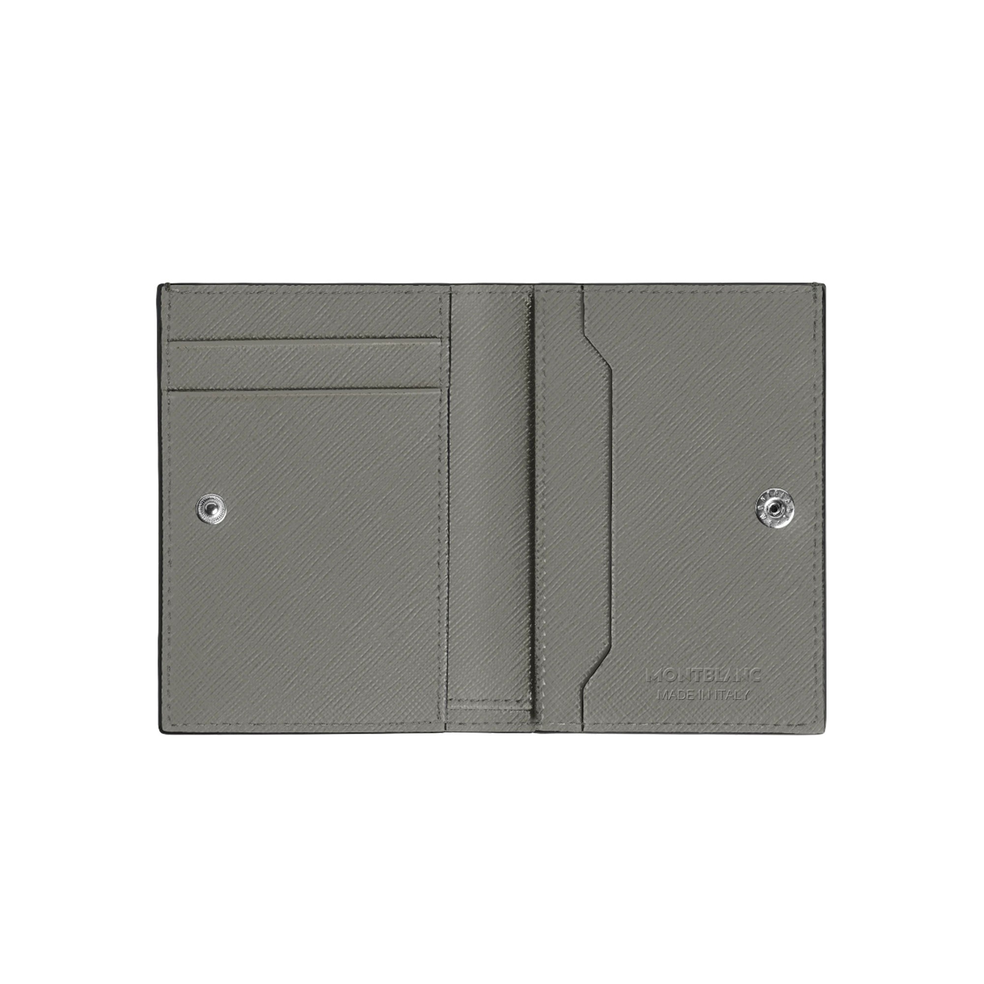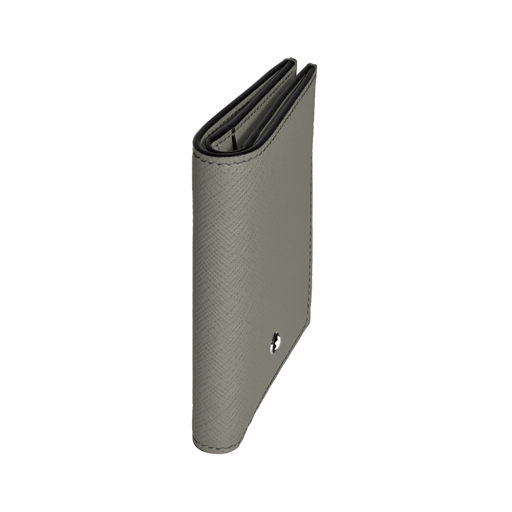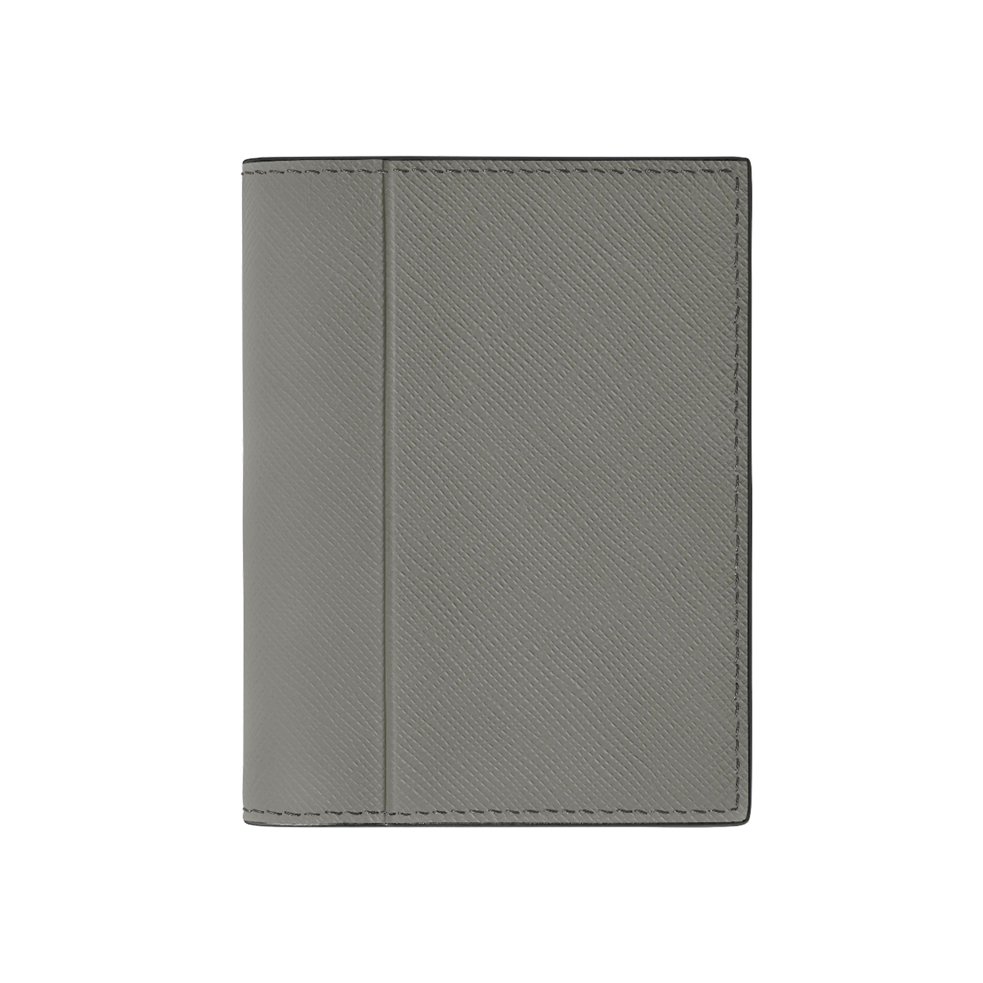 Small and stylish, this mini wallet crafted in medium grey Saffiano-printed leather allows you to travel light without leaving any of your important documents behind. Its compact silhouette opens to reveal three credit card slots and a banknote compartment, plus two additional pockets.