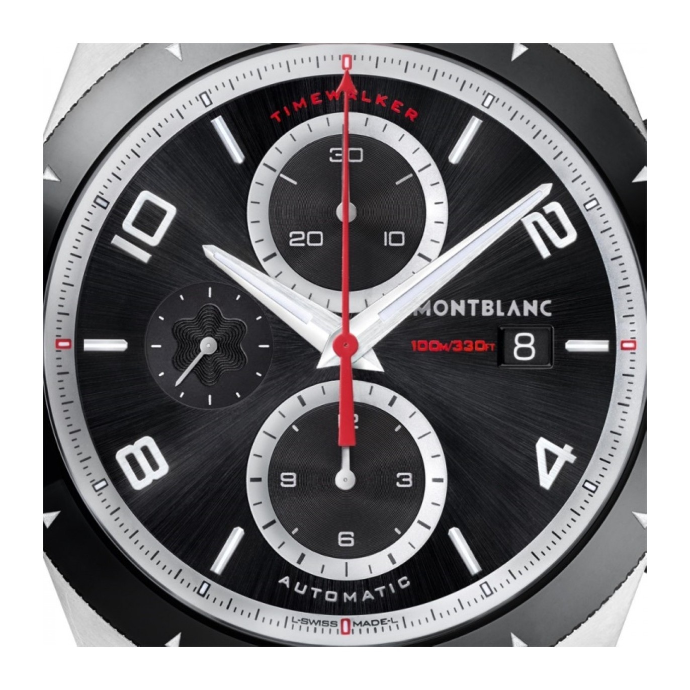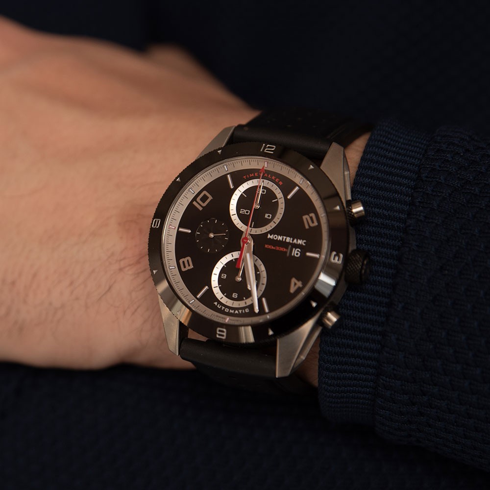 Montblanc established in 1906 in Germany. In addition to writing utensils now also luxury watches. Montblanc is one of many luxury brands belonging to the luxury goods group Richemont. As the world saw Montblanc's watchmaking expertise rise to the top, the brand sought to maintain its value: the pursuit of high-quality and craftsmanship. This collection is inspired by the simplicity and clarity of vintage automotive speedometers, the Montblanc Timewalker Collection offers the ultimate reliability, precision and innovative timekeeping. Offering technical excellence, without compromising on style, this Montblanc Timewalker Men’s Watch will allow your enjoy powerful aesthetics and performance.Showcased in a sapphire crystal glass lens, this striking timepiece features a black chronograph dial, a date display window at 3 o’clock, Super-LumiNova® coated hands and indices, a black bezel and a black rubber strap with asymmetrical holes.Powered by an automatic movement, this performance-focused timepiece provides water resistance up to 100 meters.