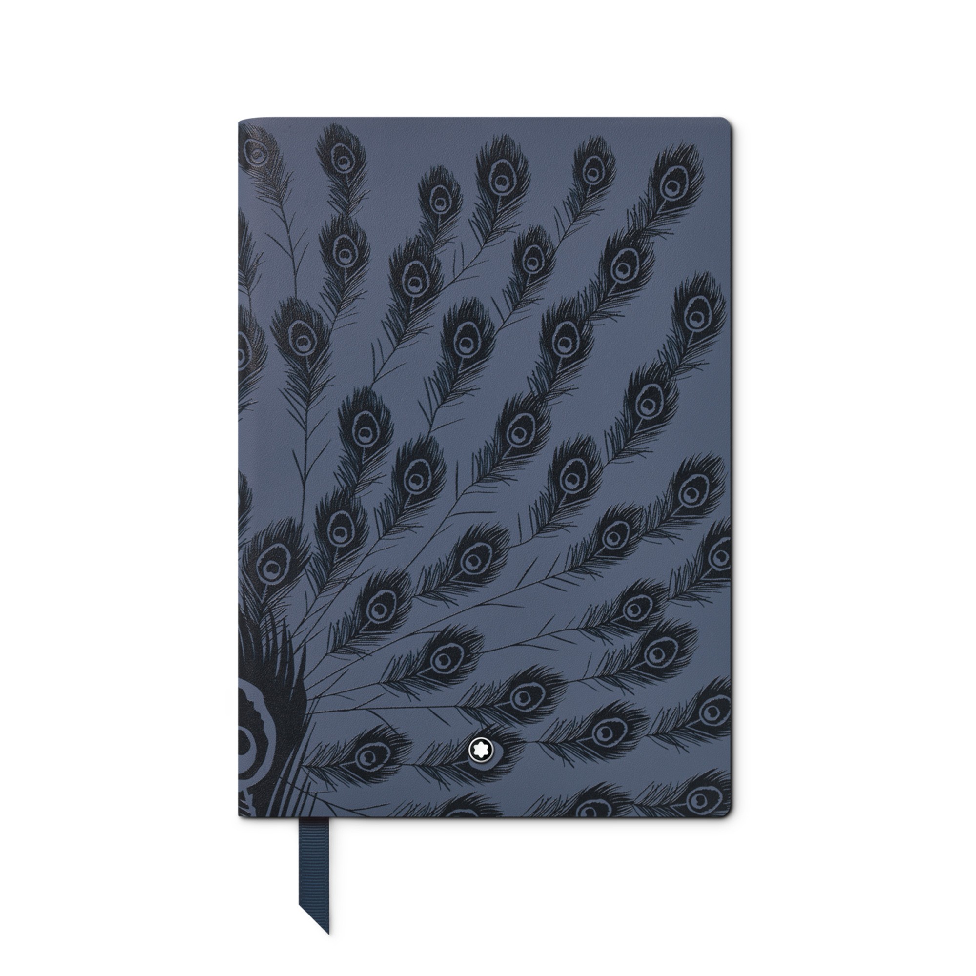 Notebook #146 small, Writers Edition Homage to Jane Austen, Blue - Lined. Made in blue leather with a glossy digital print with peacock feathers inspired by the book cover of her famous novels.