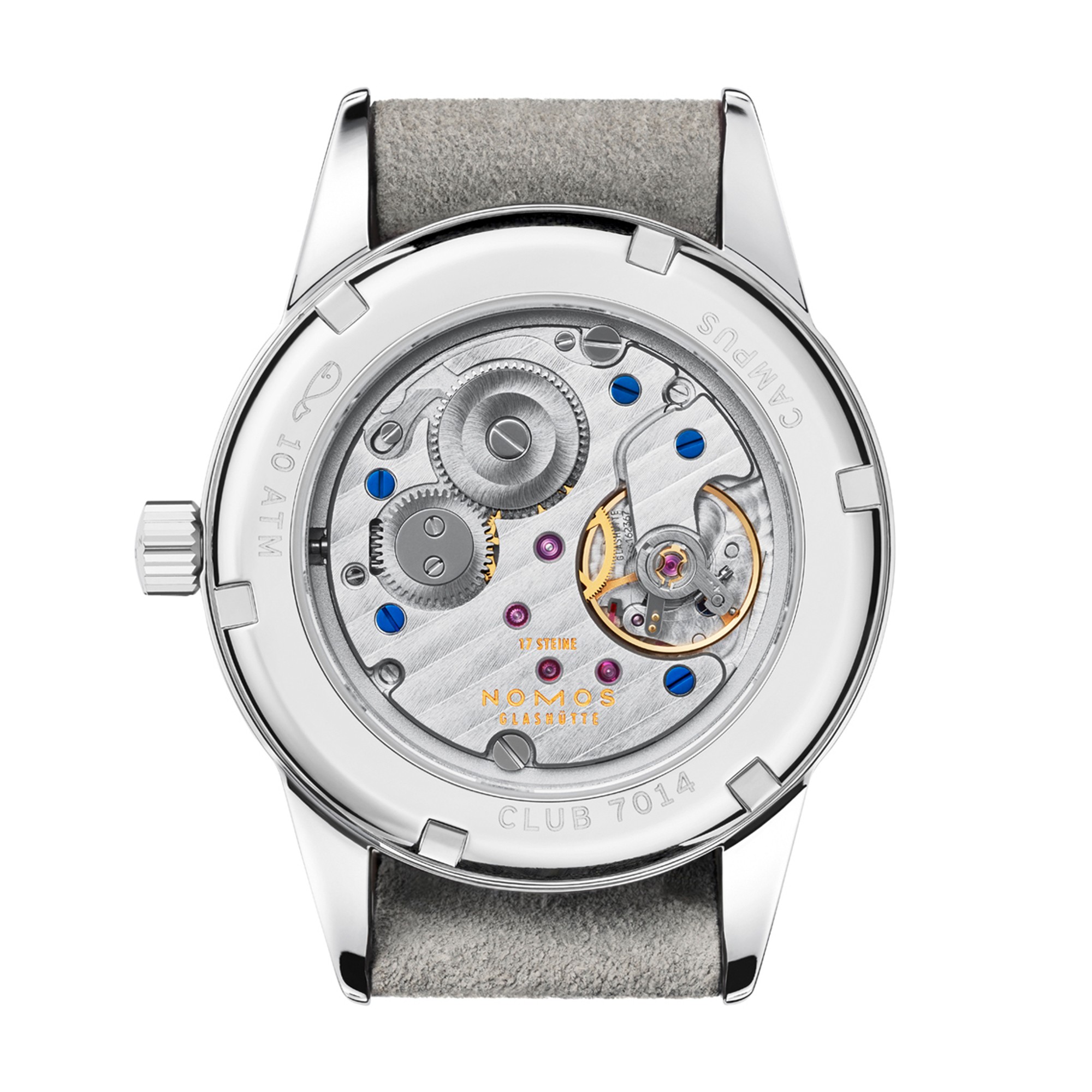 Featuring a transparent case back, the NOMOS Glashutte Club Campus 36mm Men's Watch 709 offers a captivating view of its intricate automatic movement. This mechanical marvel showcases the exceptional craftsmanship and technical expertise of NOMOS Glashütte, a brand renowned for producing outstanding timepieces.