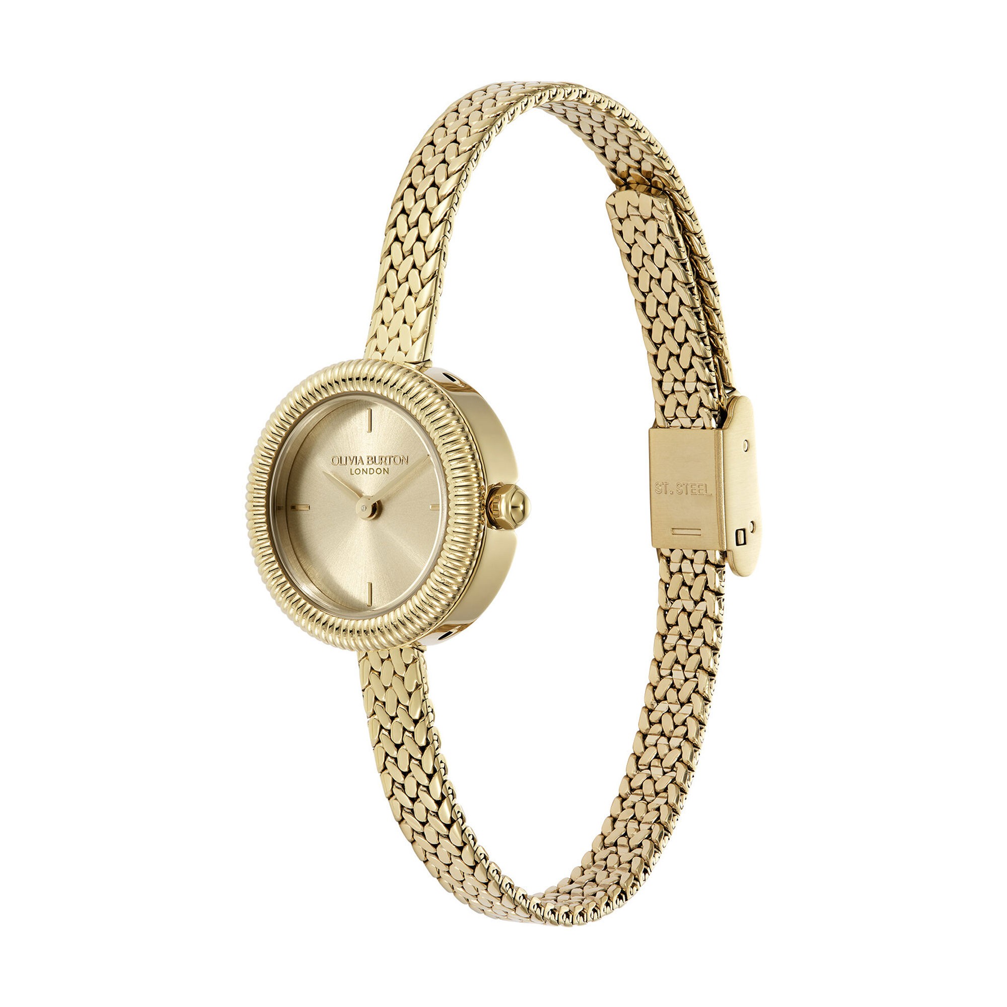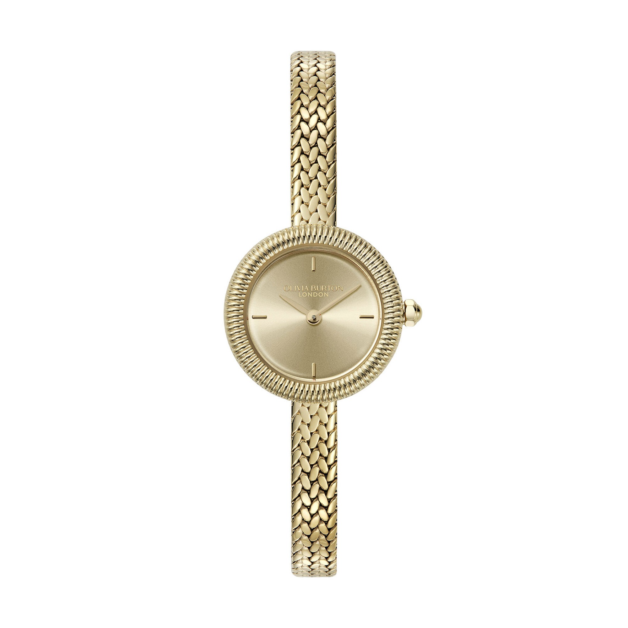 Perfect for fans of a delicate look, this mini watch is full of beauty. Finery’s petite 20mm dial has a Light Gold sunray finish for added shimmer. Antique-inspired touches include the pretty textured bezel and delicate gold-tone mesh strap.