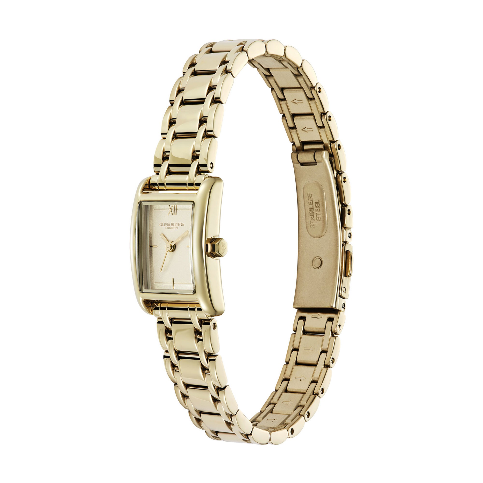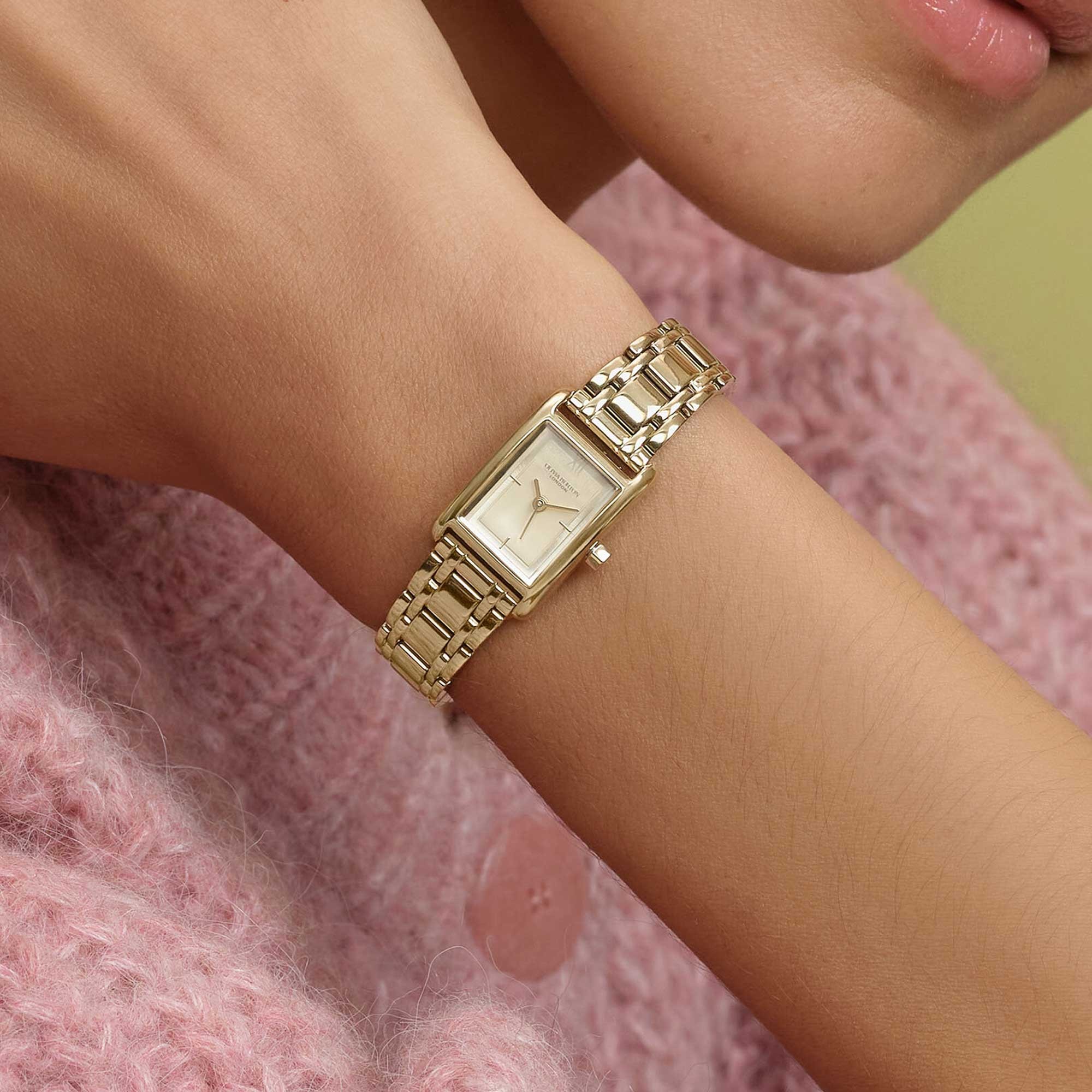 Introducing our best-selling Grove in a new mini size. The petite rectangular Light Gold dial is beautifully finished with a sunray border and domed crystal. Complete with slim case and classic bracelet strap in a gold finish, this tiny classic is perfect for stacking with jewellery.