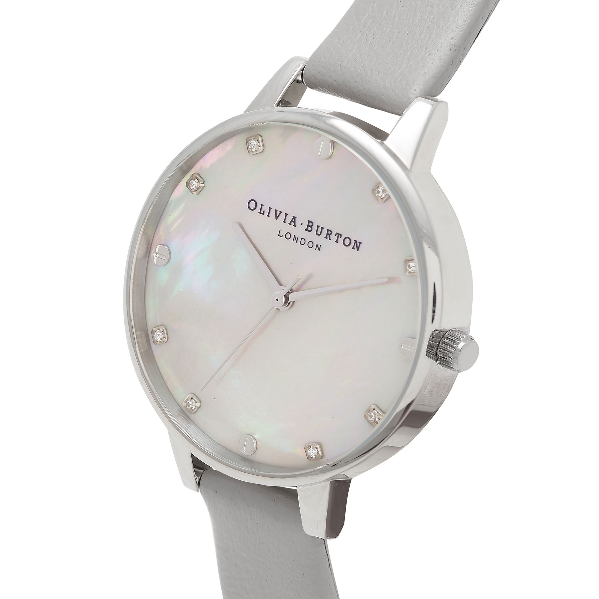 Oliviia Burton Ladies Watch OB16SE16 Mother of Pearl Dial Silver Case and Grey Strap