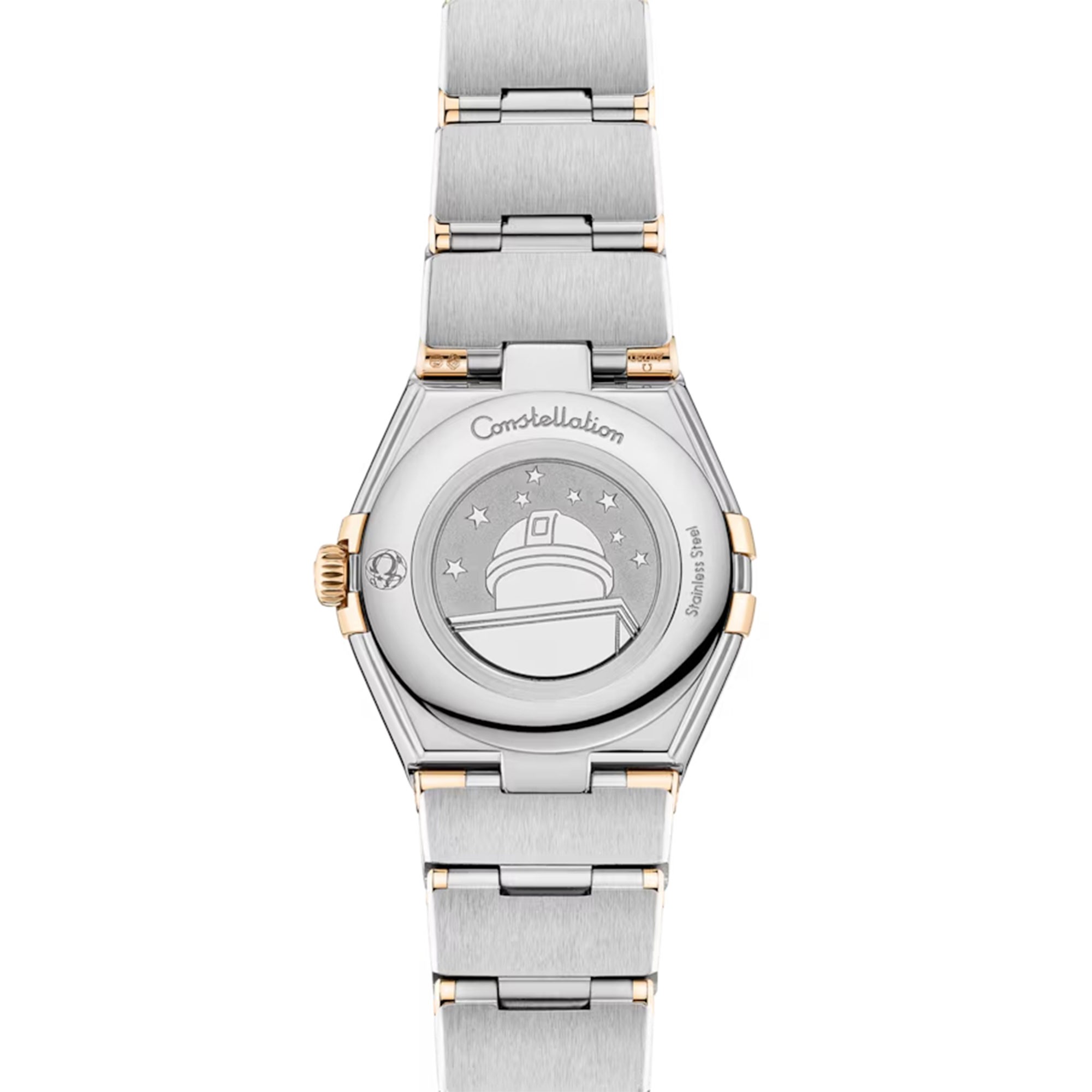 The watch is presented on a signature mono-rang bracelet with easy comfort-adjustment, and is powered by the OMEGA Calibre 4061, which sits behind a stamped Constellation Observatory medallion on the caseback.