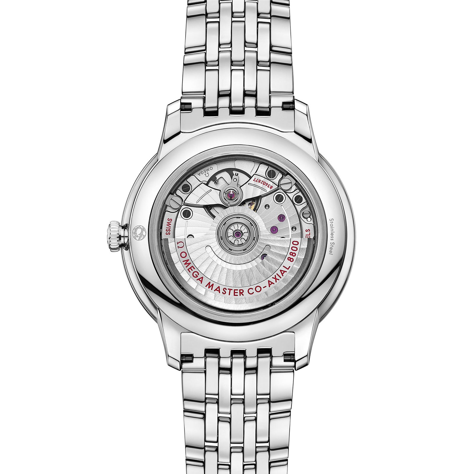 This Master Chronometer certified watch is presented on a stainless steel bracelet and is driven by the OMEGA Master Co-Axial Calibre 8800, which can be admired through the scratch-resistant sapphire crystal caseback.