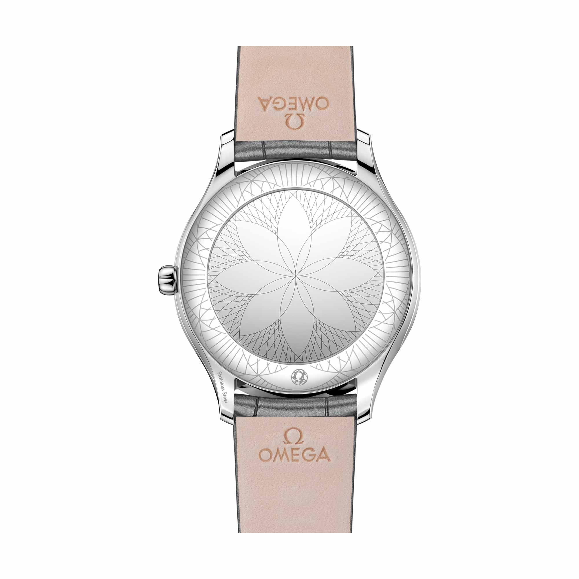 The watch is driven by the OMEGA calibre 4061, which sits behind a special mirrored caseback with a metalized “Her Time” pattern. Finally, the watch is presented on a rhodium leather strap with a Trésor buckle.