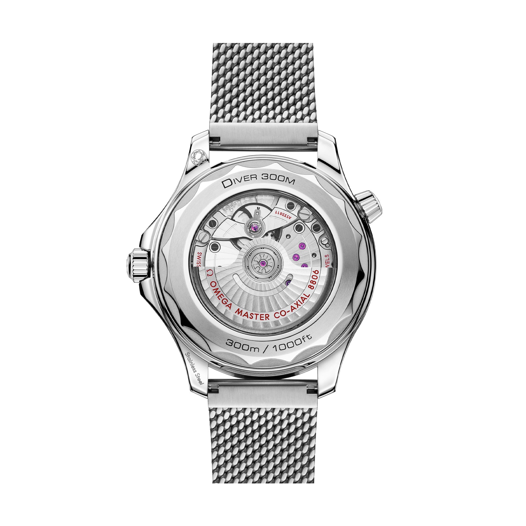 At its heart lies the OMEGA Co-Axial Master Chronometer Calibre 8806, a movement renowned for its precision and reliability. The sapphire-crystal caseback showcases this exceptional mechanism, allowing a glimpse into the watch’s intricate workings.