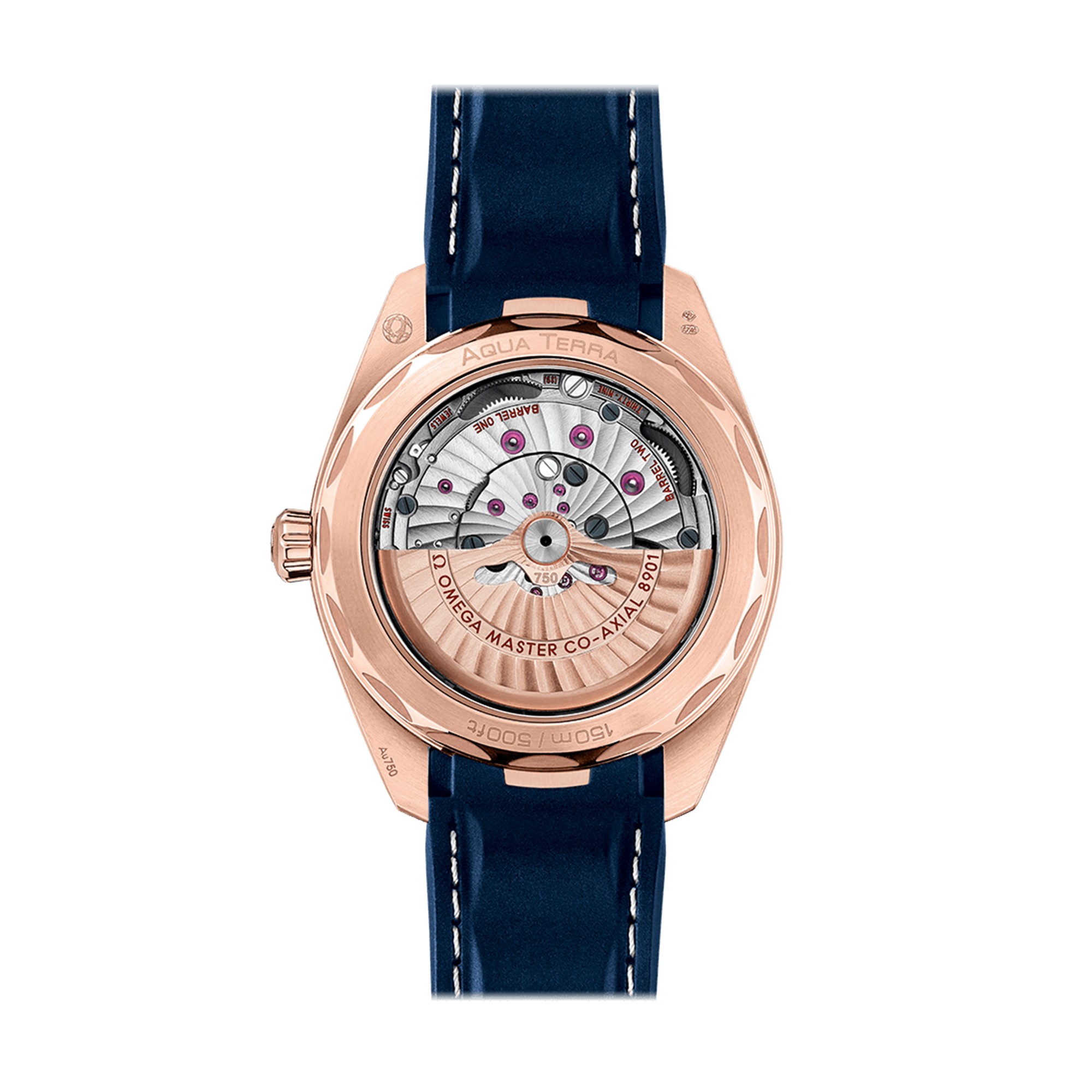 The blue strap is made from structured rubber and includes an additional 18K Sedna™ gold link which integrates it to the case. This certified chronometer is powered by the OMEGA Master Chronometer calibre 8901, certified at the industry’s highest standard by the Swiss Federal Institute of Metrology (METAS).