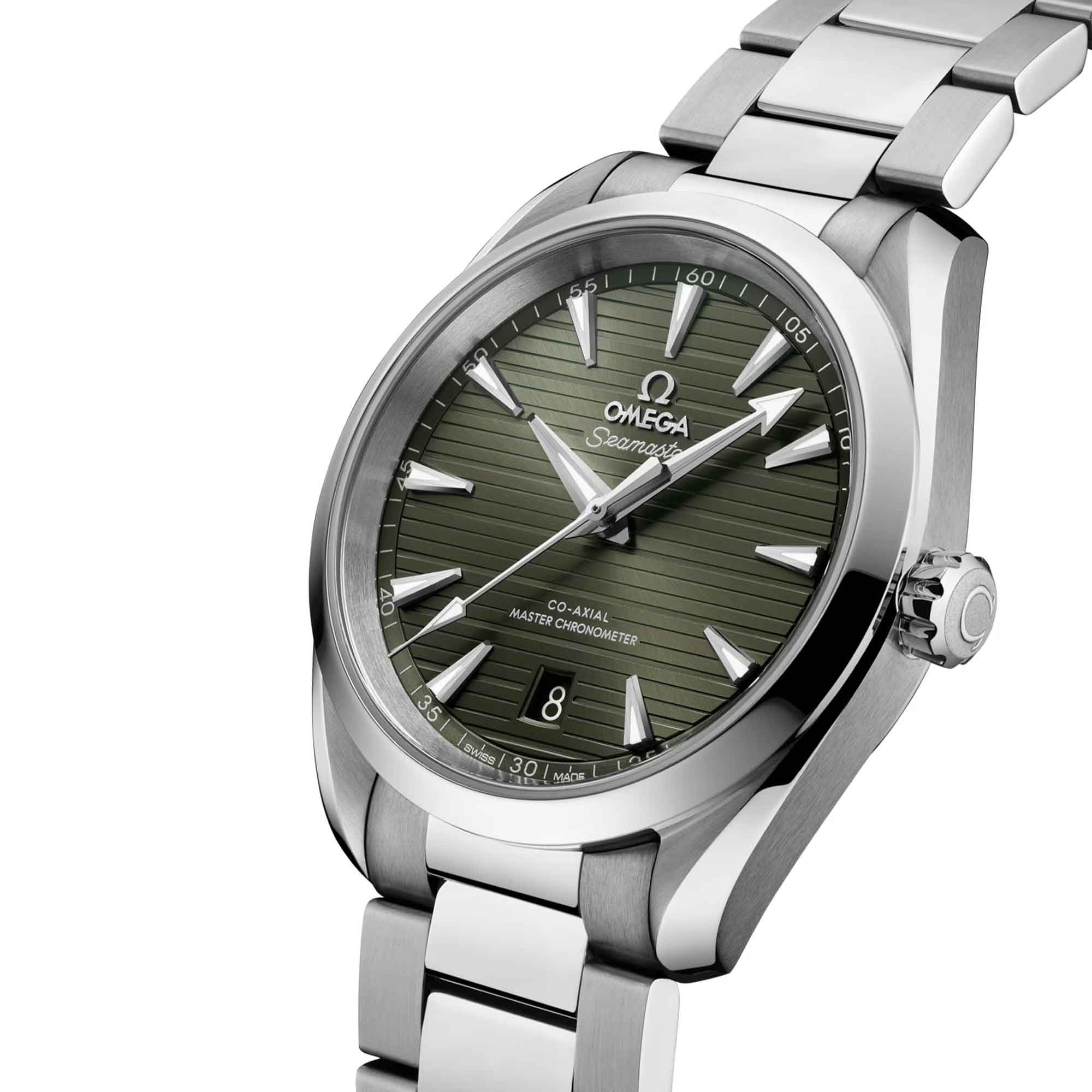 The watch is presented on a polished and brushed bracelet with OMEGA’s patented screw and pin system, and powered by the OMEGA Master Chronometer calibre 8800, certified at the industry’s highest standard by the Swiss Federal Institute of Metrology (METAS)
