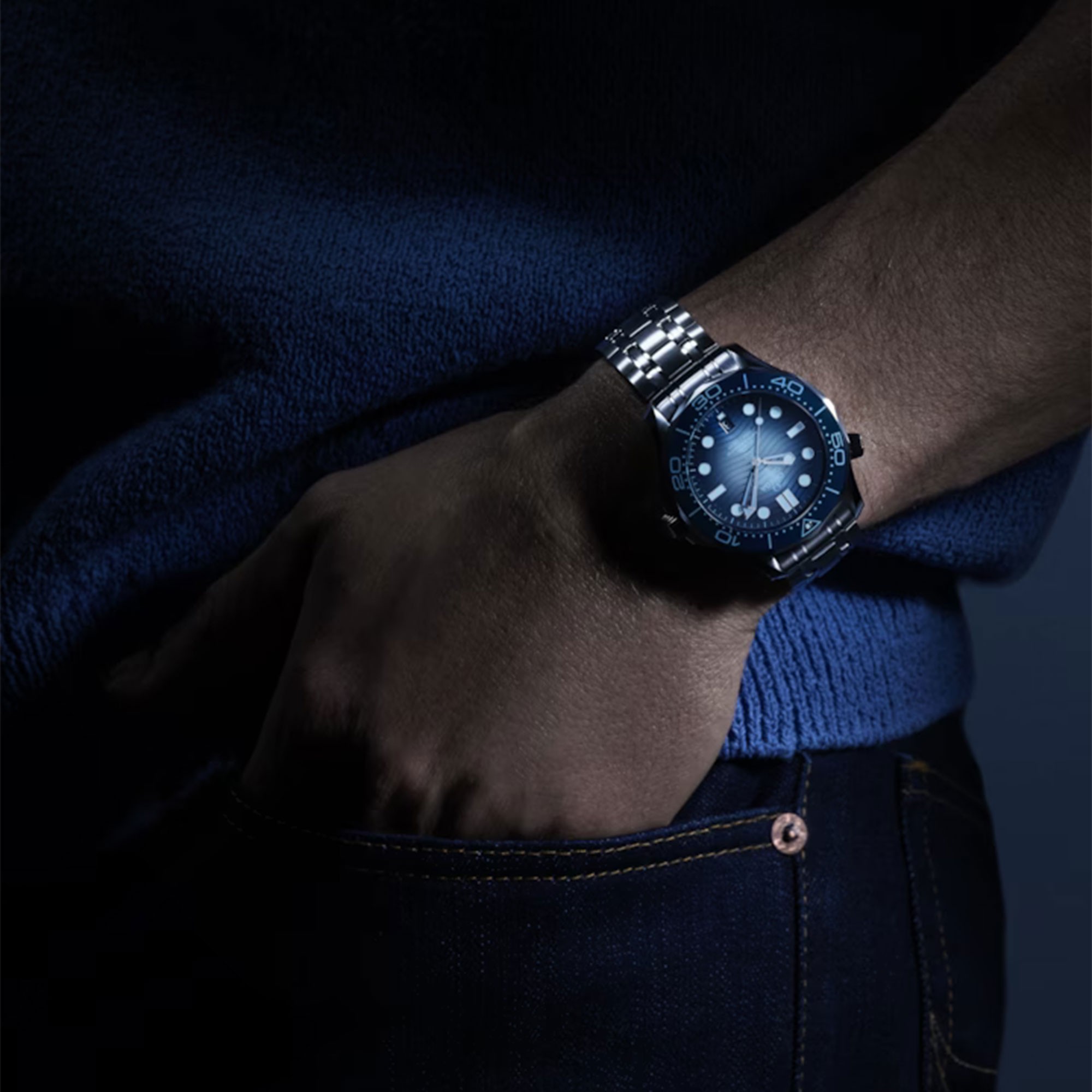 Introducing the extraordinary OMEGA Seamaster Diver 300M Oceanic Icon Co-Axial Master Chronometer 42mm Watch O21030422003003, a timepiece that combines the spirit of adventure with exceptional craftsmanship and cutting-edge technology. This remarkable watch is designed for those who seek both style and performance in their underwater explorations. The watch features a robust and stylish 42mm stainless steel case, meticulously crafted with attention to detail. Its polished and brushed finishes exude a sense of refinement, while the durable construction ensures reliability in extreme conditions. The size of the watch provides a commanding presence on the wrist, making it suitable for both professional divers and enthusiasts alike. Powering this timepiece is the OMEGA Caliber 8800, a Co-Axial Master Chronometer movement. The blue ceramic dial with a wave pattern pays homage to the ocean's depths, while the luminescent hour markers and hands ensure excellent visibility in low-light conditions or underwater. The date window at 6 o'clock adds practicality to this elegant timepiece. Shop OMEGA watches at Chisholm Hunter today.