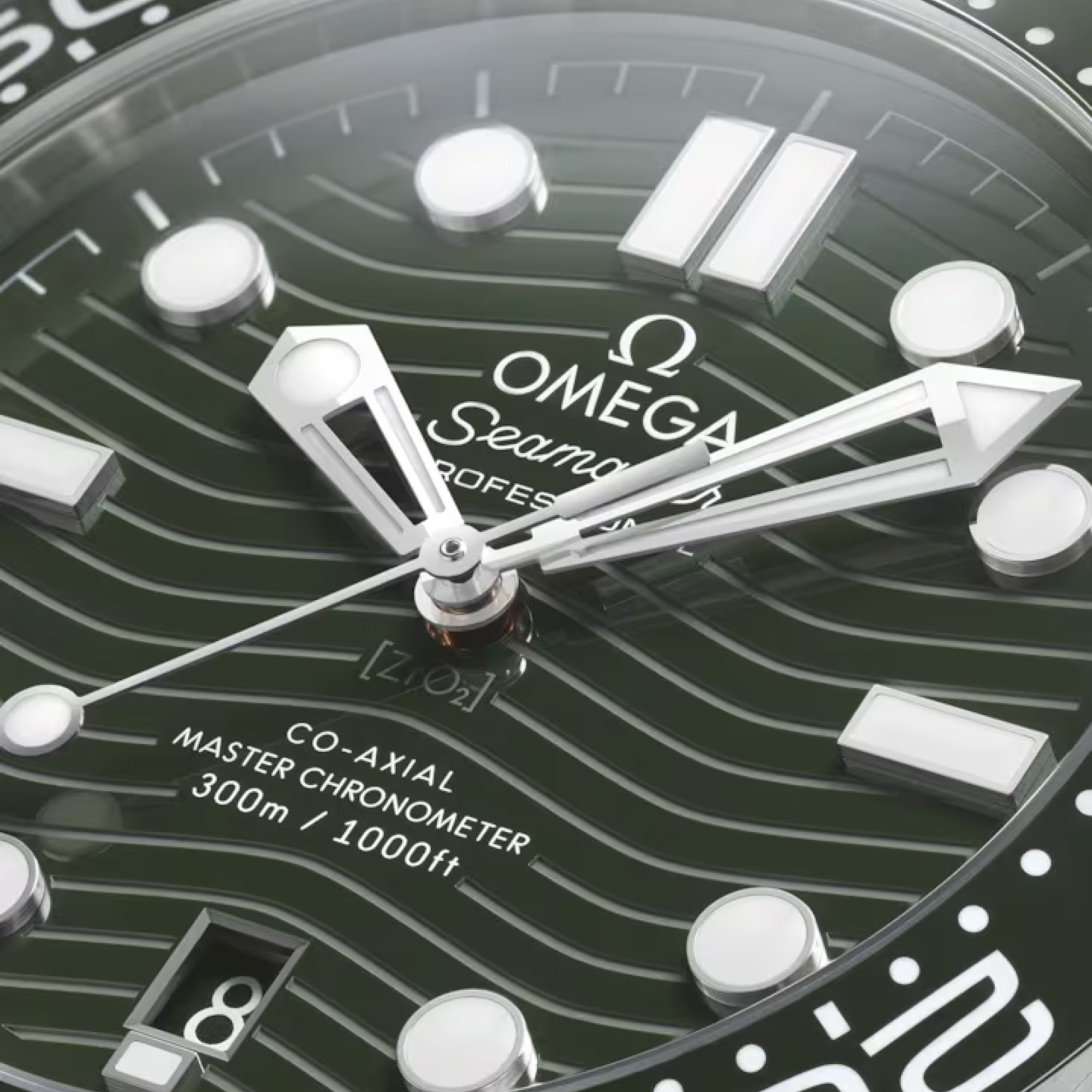This new OMEGA Seamaster collection pays homage to previous ocean heritage collections that have accumulated a large following since 1993. Updated with the OMEGA’S most advanced materials and movements, this model combines modernity design with high functionality. This piece features a 42mm stainless steel with a green ceramic bezel including a white enamel diving scale. The dial is also polished green ceramic and includes laser-engraved waves and a date window at 6 o’clock. Rhodium-plated raised indexes and skeleton hands are filled with white super-LumiNova, along with a helium escape valve. Presented on an adjustable stainless-steel bracelet, this model is water resistant up to an astounding 300 metres.