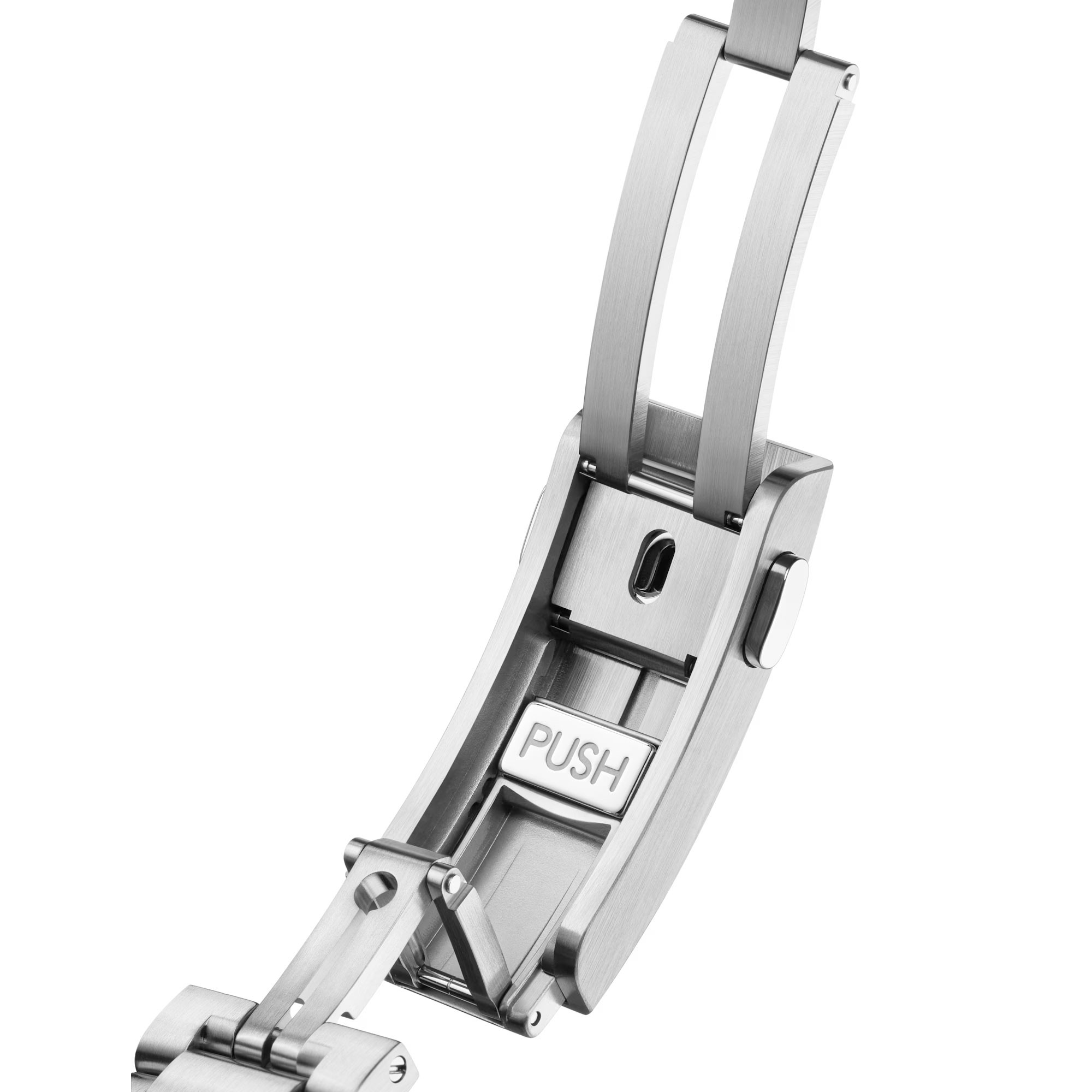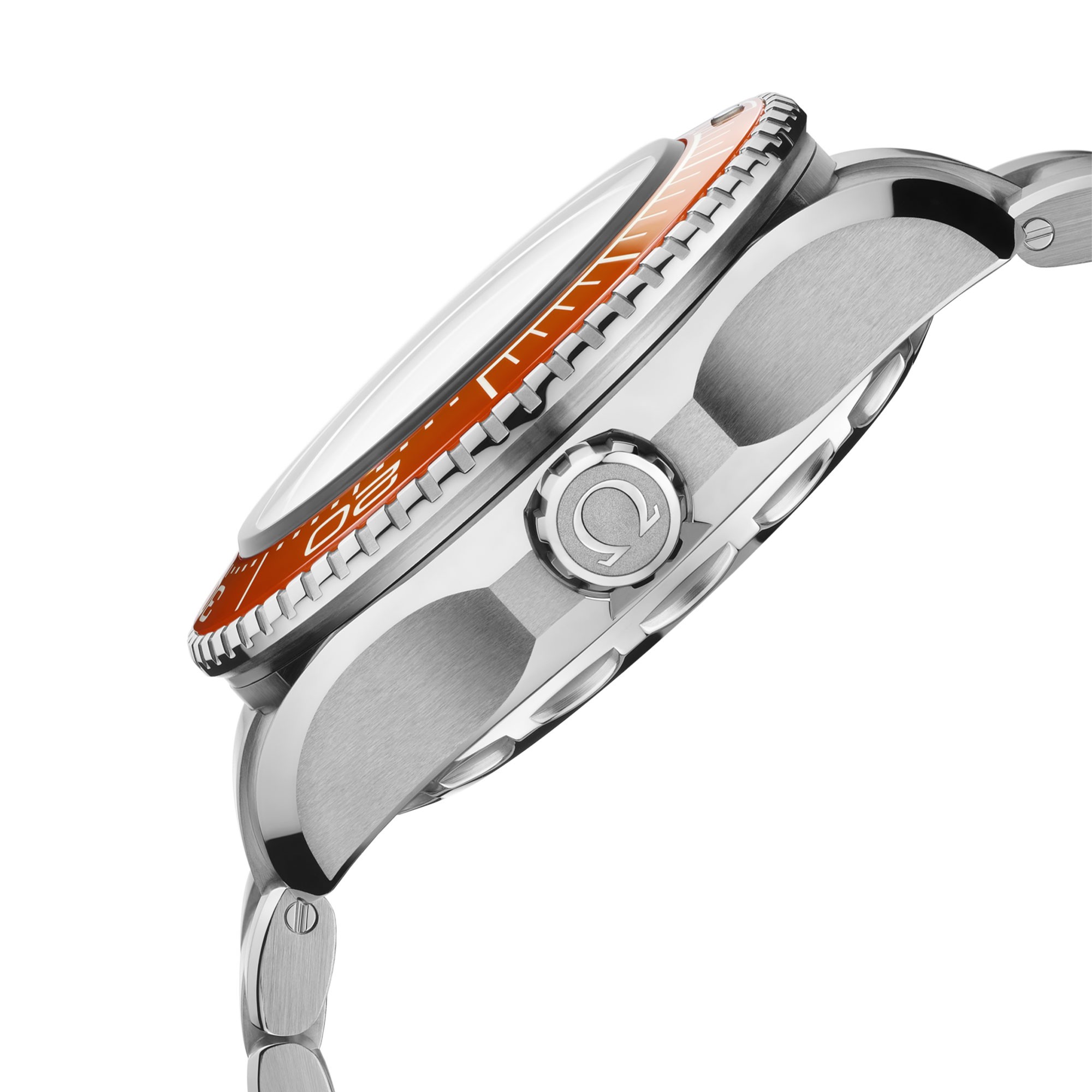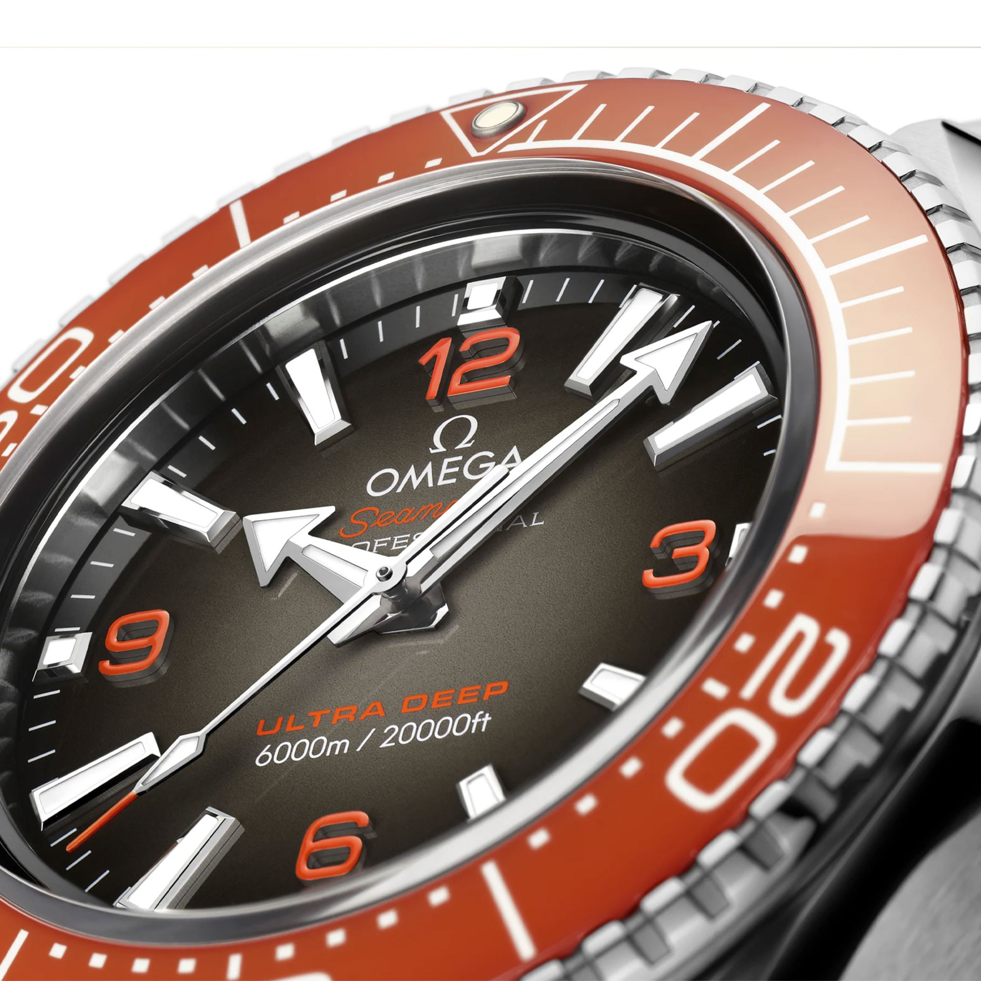 The Five Deep Expedition held in 2019, made diving history as it reached the deepest place on earth. Following this world record, Omega was inspired to create a collection that would be able to thrive within the deep ocean’s intense conditions. This model certainly achieved that as it has an incredible water resistance of 6000 metres- this watch has set a new tone for divers watches. The 45.5mm model features a polished orange ceramic bezel with its diving scale in liquid ceramic and Super-LumiNova. The lacquered gradient dial transitions from grey to black with four Arabic numerals in orange creating a contemporary design. The hands and markers are crafted from 18ct white gold and coated with white Super-LumiNova.